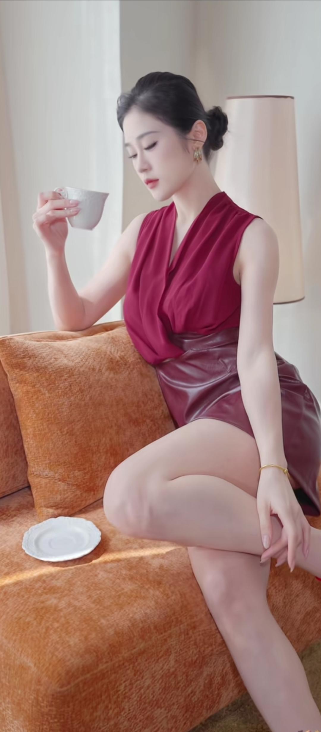 优雅红衣,自信微笑,元气满满的一天!🌟✨