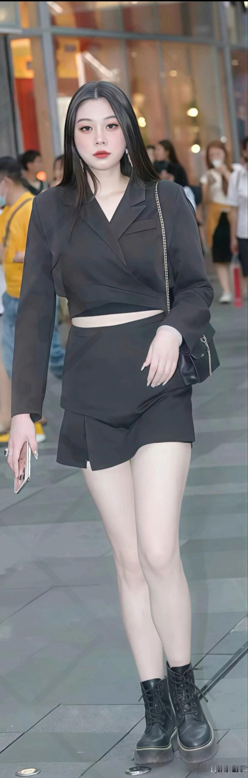 黑西装搭同色系裙裤+厚底马丁靴,一身黑简约利落,显高又显瘦,日常出门这么穿很省心。