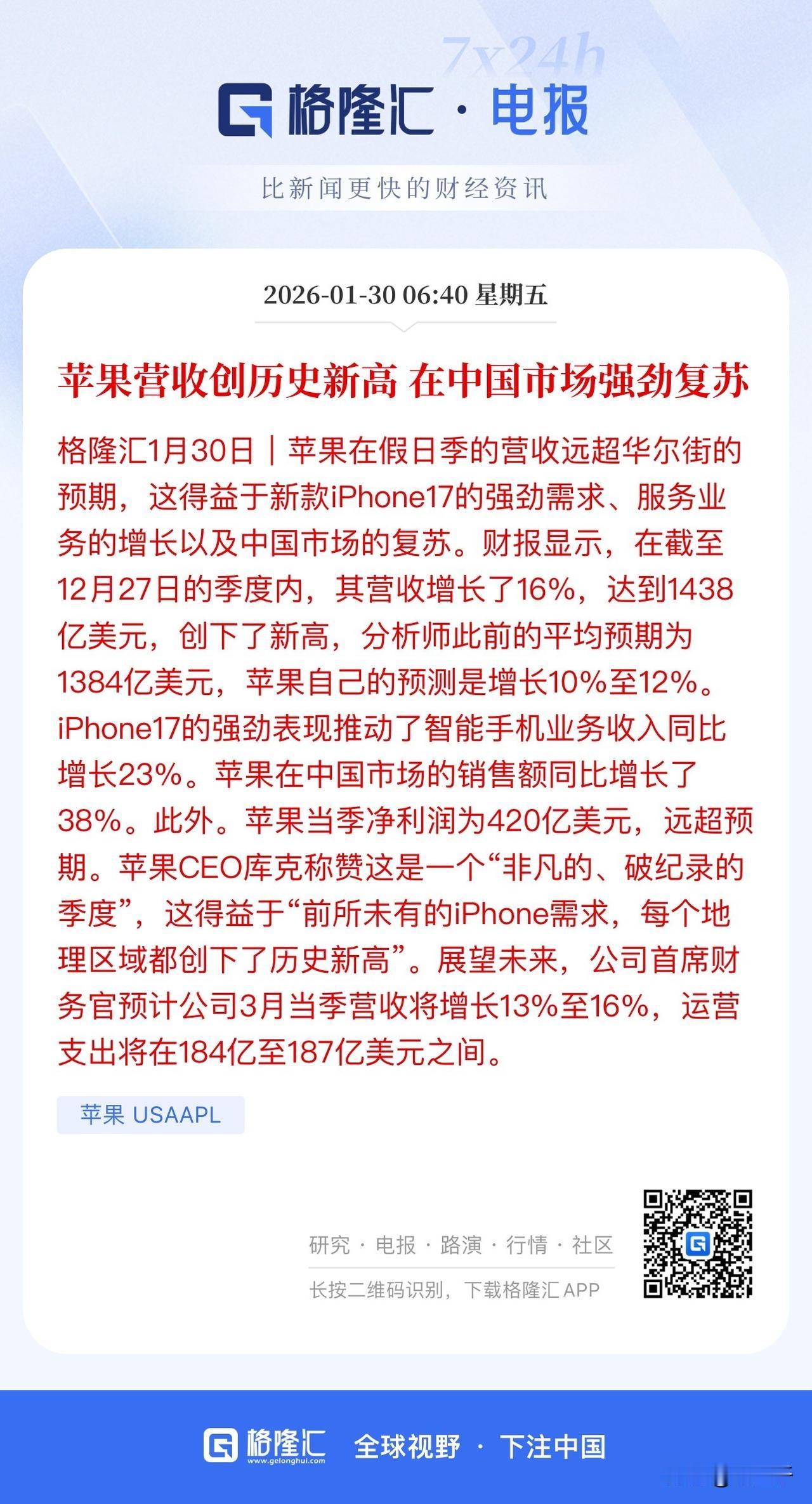 说好的支持国货, 为什么你们都买了苹果手机? 苹果在中国市场的销售额同比增长38%, 苹果当季销售额1438亿美元、 净利润420亿美元。 压力交给了特斯拉, 如果特斯拉机器人不能量产, 那么惨淡的汽车销售业绩, 股价腰斩也不为过! 另外也要注意暴跌的微软风险, 前面左脚踩右脚的资本支出成为了杀跌理由, 云业务高增速也没能持续。 … 美股科技股戴维斯双杀的逻辑: 高增速切换至中低速、资产折旧拖垮美股净收益 比如过去英伟达持续3年保持55%-60%复合增速,市场就最高给了50倍的收益! 苹果、特斯拉也经历过这个估值爆发的过程, 也经历过10%增长股价长期低迷巴菲特看准现金流价值重仓苹果赚千亿美金的机会! 苹果是玩财务的高手, 过去10年憋三年爆发一年的节奏, 硬生生把总体市值推升1倍以上!