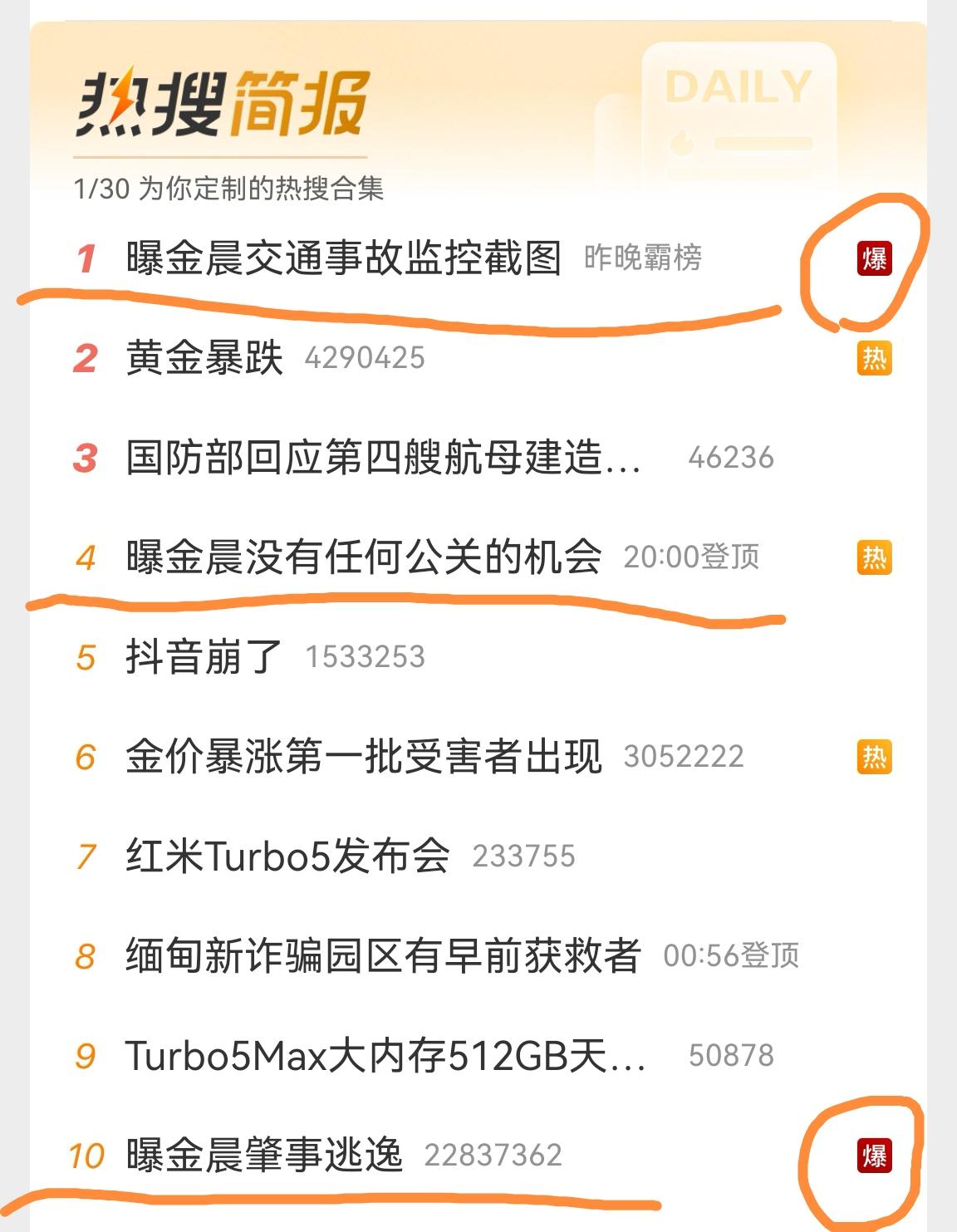 金姓艺人交通事故今天还热搜霸榜,已经这样好几天了,要多奇怪就有多奇怪。 第一点就是:以为这是最近发生的事情,结果一查居然是去年3月份发生的。 第二点就是:以为是她碰到人了,被撞者纠缠不放网络维权,结果人家只是单方面汽车撞墙没有任何被撞者。 综上两点就是快一年前的事了,而且是单方面事故没有被撞者。但怪就怪在自从前几天有人爆料之后就持续霸榜热搜,没有受害者却天天有人爆料。 想问,这正常吗?