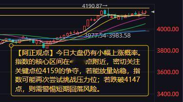 【1月30日A股盘前分析:今日大盘仍有小幅上涨概率】 昨日地产和白酒突然“双飞”,让市场行情有点超预期,究其逻辑,地产因为政策暖风频吹,而白酒则是沾了春节消费旺季的光,且两者的反弹均属于超跌后的修复。能否持续上涨还得看基本面兑现,因此,其延续性有待观察…… 【今日分析】今日大盘仍有小幅上涨的概率。 总体趋势:市场处于“慢牛”走势中的震荡期。短期受资金面、技术面节前情绪影响,市场在高位震荡后,才能进入春季行情后半段。 指数判断:大盘指数的核心区间在4160点附近,这是多条趋势线密集交汇区域,构成强技术压力。 上行压力位看4178-4200点区域,这是冲高过程中需重点关注的阻力带,从稍远一点时间看,4260点,被视为本轮春季行情的中期目标位; 下行支撑位看4100-4130点附近,这里包含关键均线密集区(如10日、21日均线)以及前期突破位,4090点附近,是节气时间窗口回踩确认的支撑位。 注意事项:今日密切关注关键点位4159的争夺,若能放量站稳,指数可能再次尝试挑战压力位;若跌破4147点,则需警惕短期回落风险。 热点方向:“科技+有色资源”可能是贯穿全年的核心主线。科技成长方向重点关注AI算力、半导体、存储芯片、机器R等,前沿题材关注商业航天、太空光伏等(短期涨幅较大,进入震荡整理阶段);周期与资源品,重点关注有色金属(稀土、钨、锑、铜、黄金)以及涨价链中的化工、锂电池;年报业绩关注电子、机械设备等。 操作策略:控制仓位,保持稳健;避免追高,等待低吸。 【综合判断】今日大盘仍有小幅上涨概率。指数的核心区间在4160点附近,密切关注关键点位4159的争夺,若能放量站稳,指数可能再次尝试挑战压力位;若跌破4147点,则需警惕短期回落风险。 我写精品,你来点赞,相互支持、携手共进。 (个人观点,仅供参考,据此操作,责任自负)