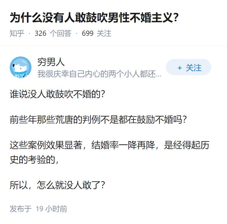 为什么没有人敢鼓吹男性不婚主义? -----------------------