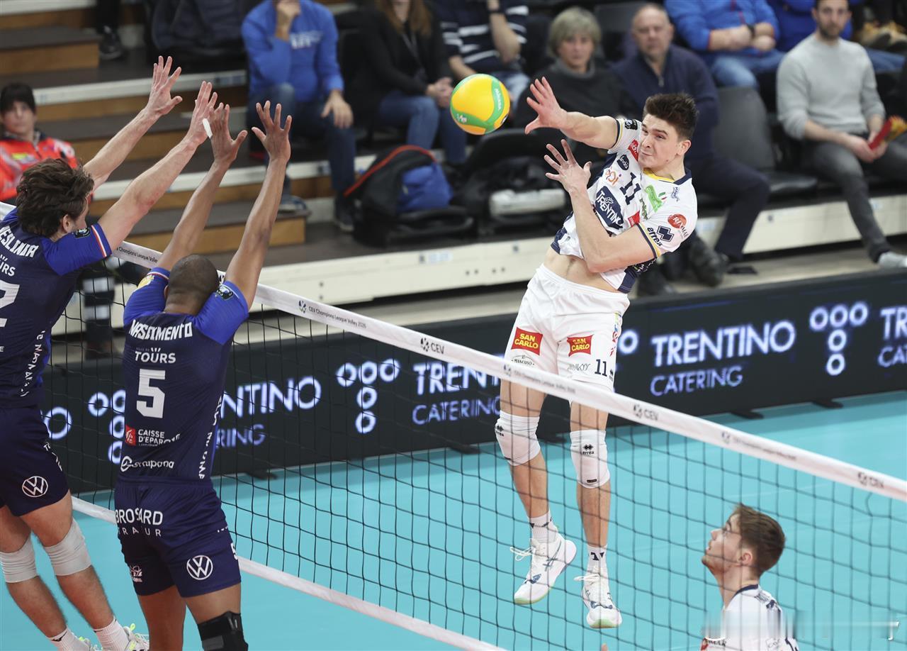 这场比赛真的撕得昏天黑地,每局比分都这么接近,决胜局更是撕到28-26!男排欧冠正赛第四轮第四场,意大利特伦蒂诺主场先丢两局连扳三局3-2(25-27 24-26 25-23 25-22 28-26)大逆转法国图尔,3胜1负的特伦蒂诺排名小组第二,安卡拉农行列小组第一。福雷砍下全场最高的40分荣膺MVP(60扣35中6失3被拦,5发),拉蒙23分,弗拉维奥11分,吉亚尼10分,托尔维10分;穆亚诺维奇24分(42扣17中1失7被拦,3拦4发),卡沃戈15分,郝斯林家11分,苏伊科宁11分,沃斯10分,纳斯西门托10分。男排 男排欧冠