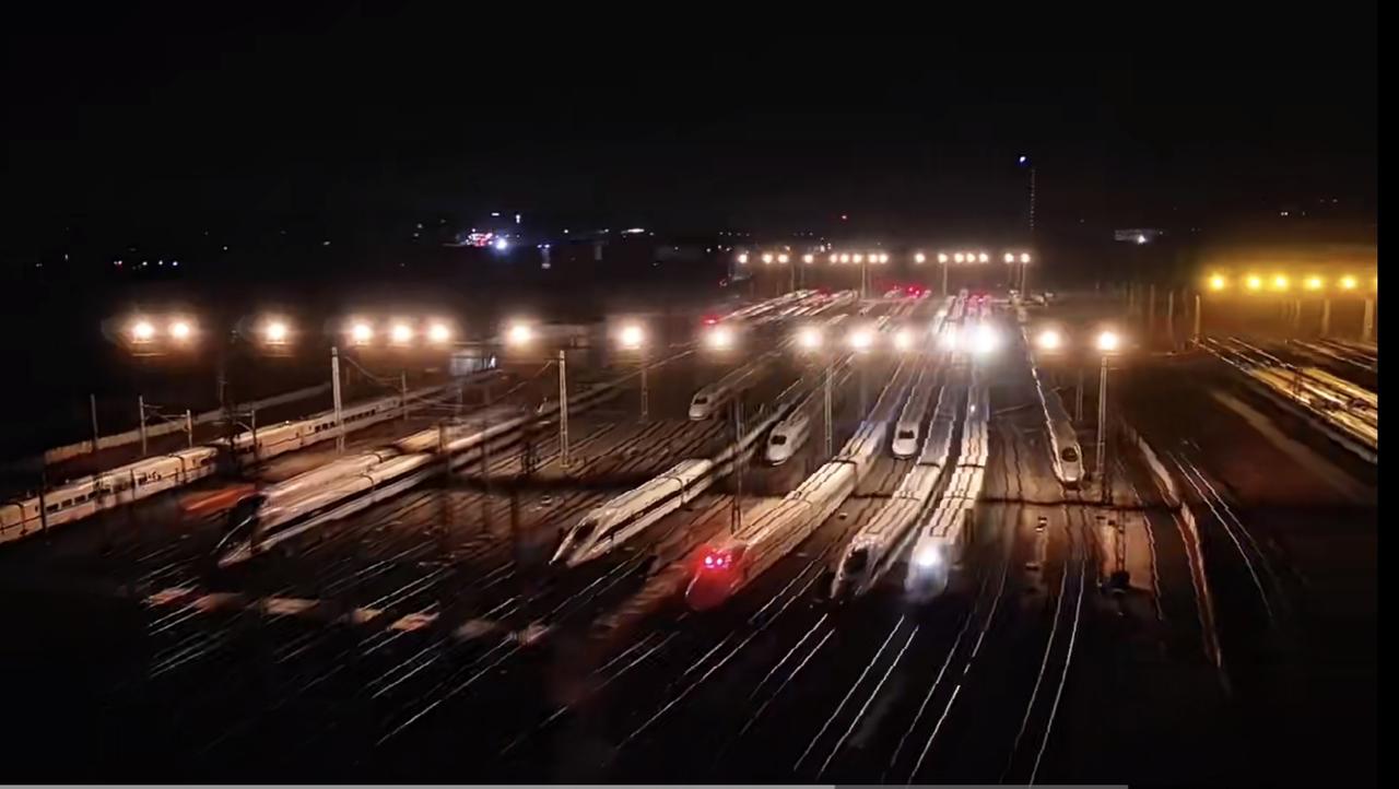 春运就像“陆地航母” 2026年春运大幕即将拉开,全国铁路预计发送旅客5.39亿人次,再创历史新高。数百组动车组整齐列队、灯火璀璨,宛若整装待发的“陆地航母”,满载着游子的期盼与团圆的希冀,向着家的方向奔赴前行。