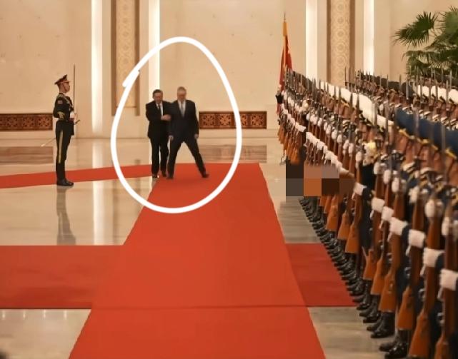斯塔默太紧张了,不会走道了!本来走到右侧,正式仪式开始,按礼仪斯塔默要走在左边,应该没见过这么威严的仪仗队阵势,脑子有点懵,直接顺拐压着角转弯!都忘了身边还有人!我们这边拉着胳膊提醒,斯塔默才回过神来!当然只是小插曲而已,无伤大雅!