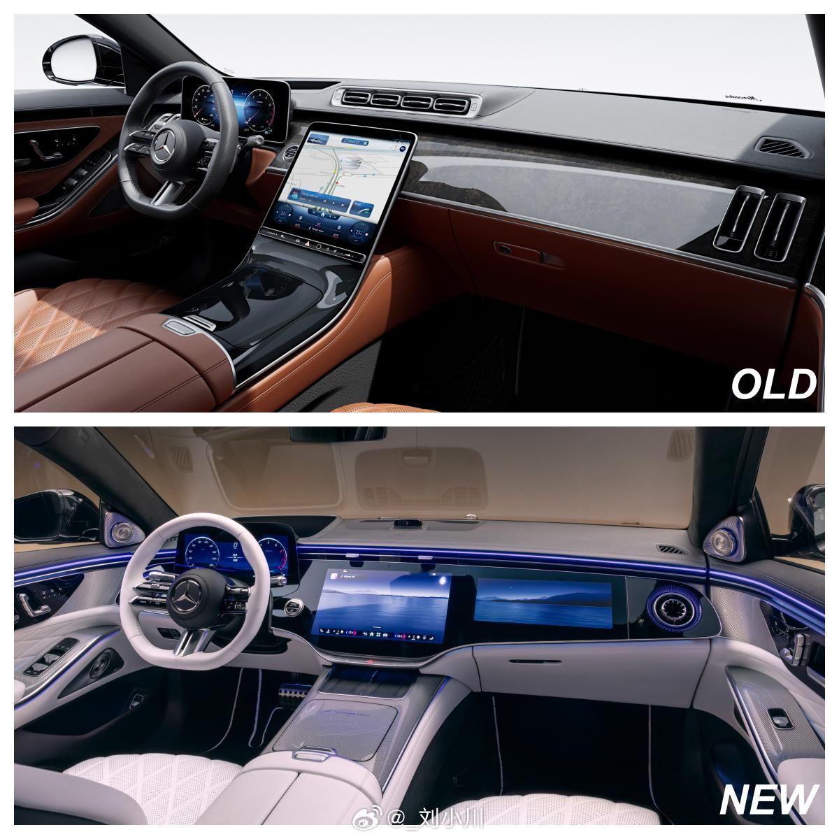 新老奔驰S级同框对比 新款 & 老款奔驰S级同框对比,外观+内饰,大家更喜欢新还是老