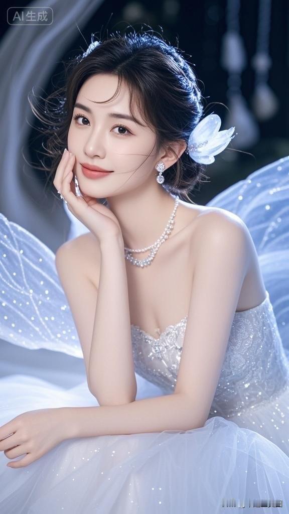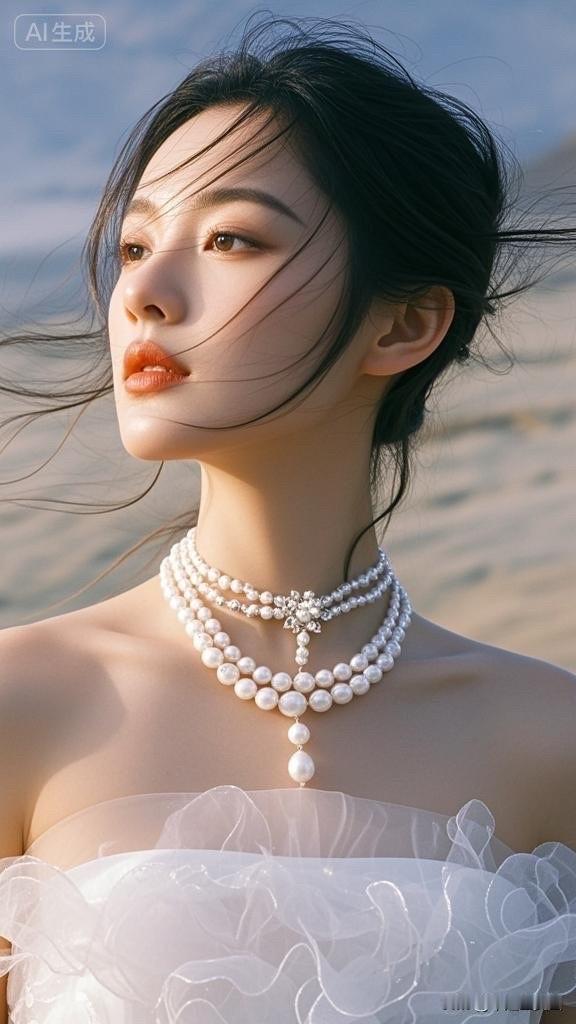 梦幻少女风,闪闪发光的礼服,优雅珍珠配饰,完美无瑕的妆容,宛如童话中的公主。