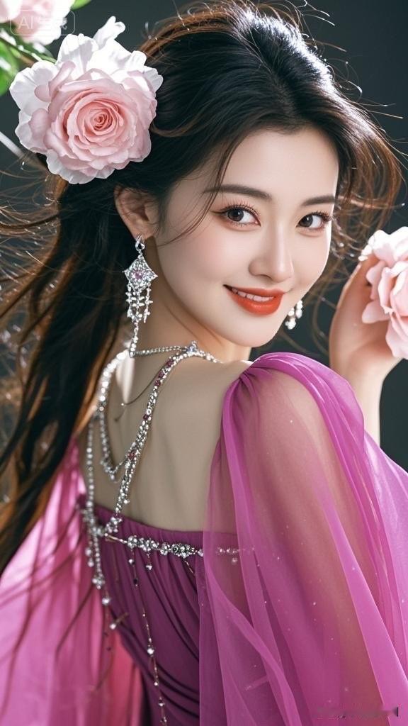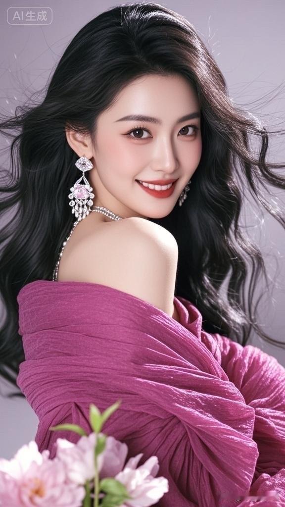 优雅紫裙与黑发相映成趣,绽放迷人魅力!💖✨