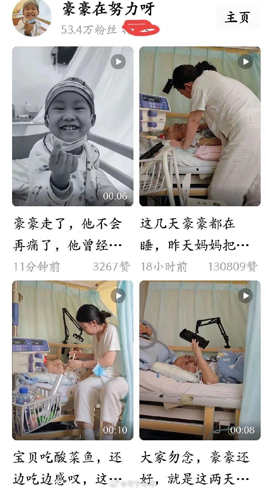 豪豪还是走了,太心疼了,一直希望他好起来了,之前看到父母都不忌口了,没想到是离开了!那会不是都出院了吗?这几天每天关注豪豪,希望能看到他的视频,但是希望落空了,孩子的病越来越严重啦,虽然早有预料,但是还是心疼啊。这个孩子太辛苦了,短暂的一生被病痛折磨,那么坚强的孩子,最后还是走了希望在天堂没有痛苦。
