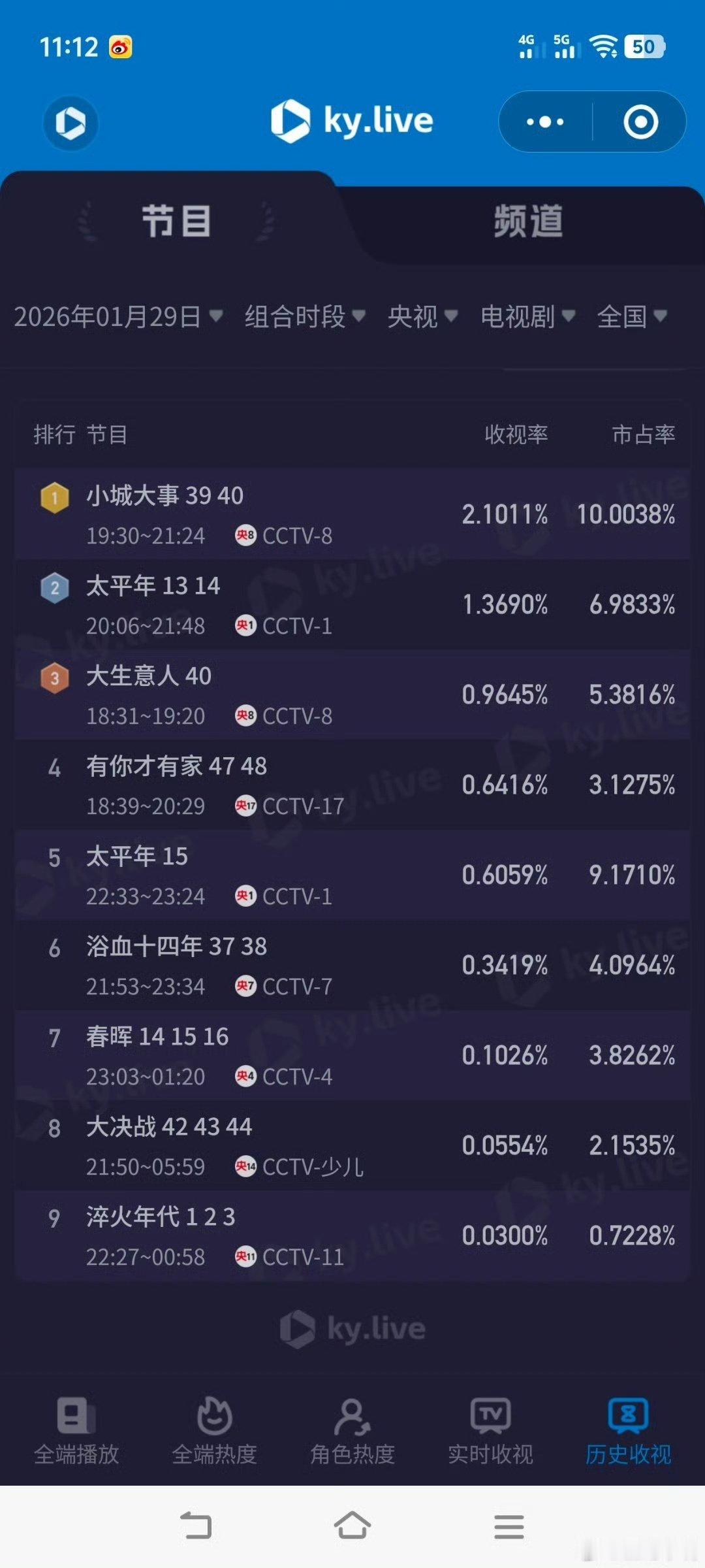 太平年首播收视实绩 《太平年》播出酷云数据来了~