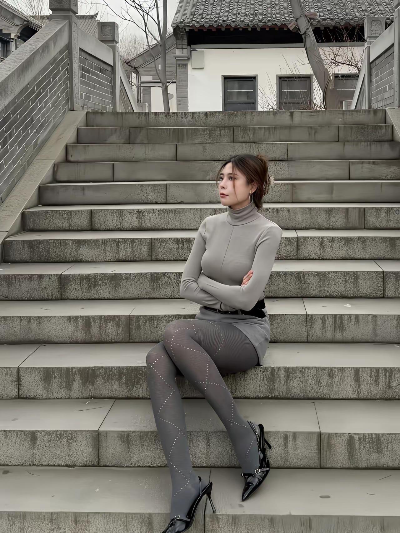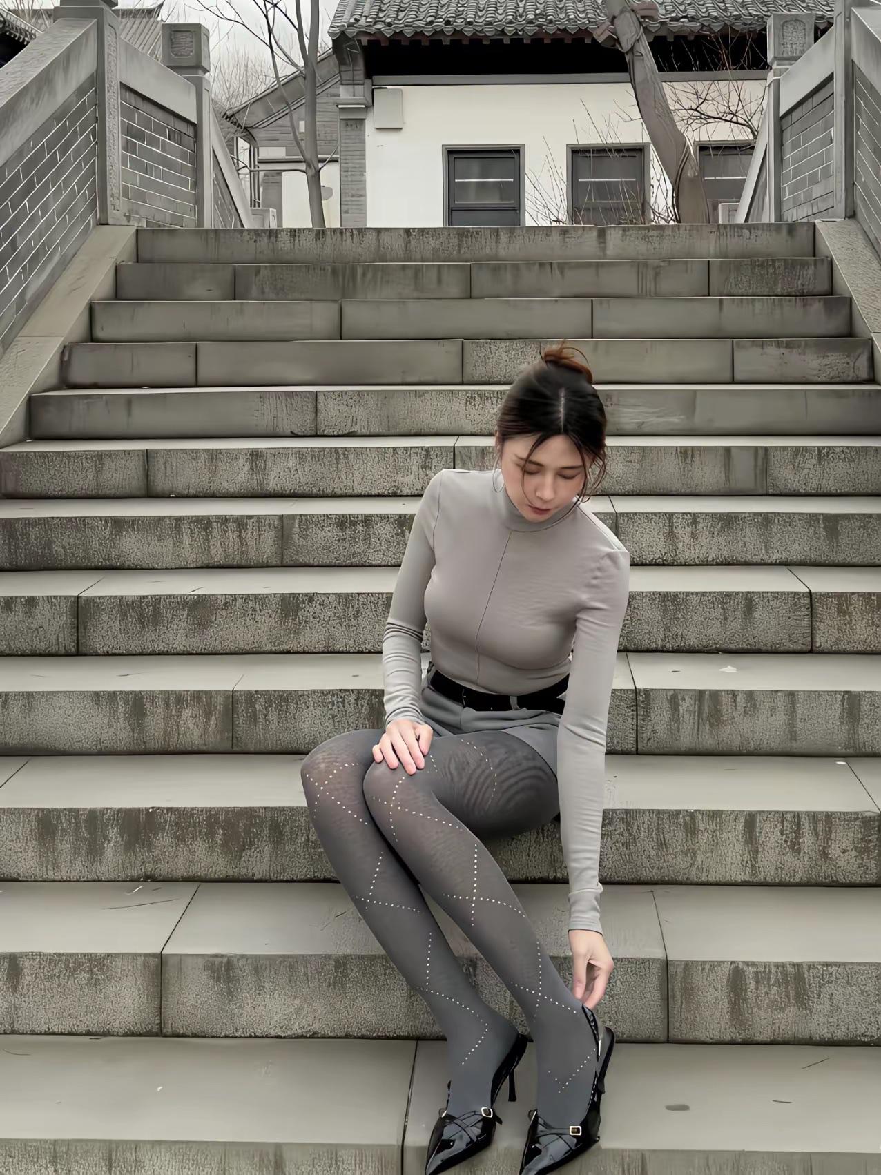 过年了,学姐男盆友给学姐买的新衣服:斑点丝袜、短裙和高跟鞋