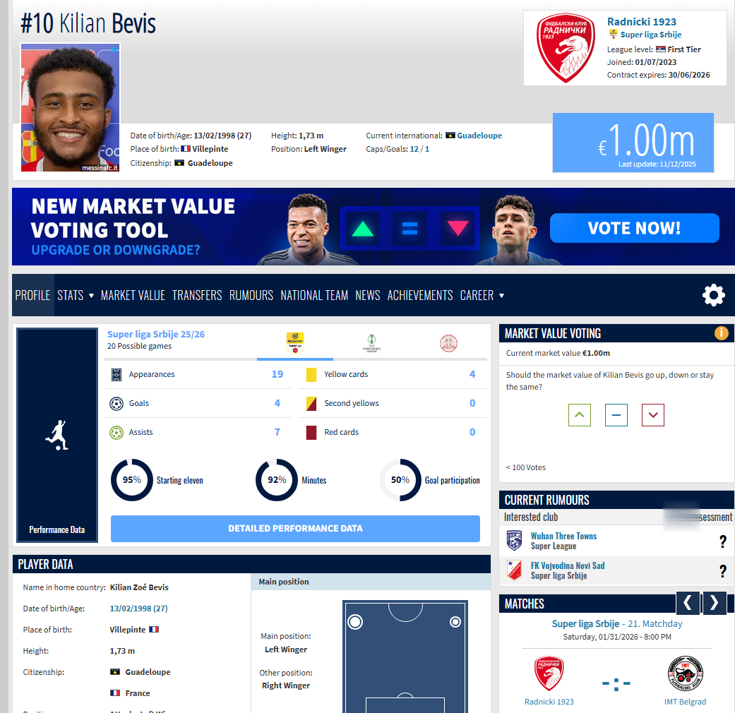 拉德尼基目前急需一名边锋,俱乐部体育部门在斯拉夫科-佩罗维奇的领导下正积极运作,预计将在二月初完成关键引援。去年冬季转会窗口,在转会市场上最为活跃,而那之后他们也成功晋级欧战。