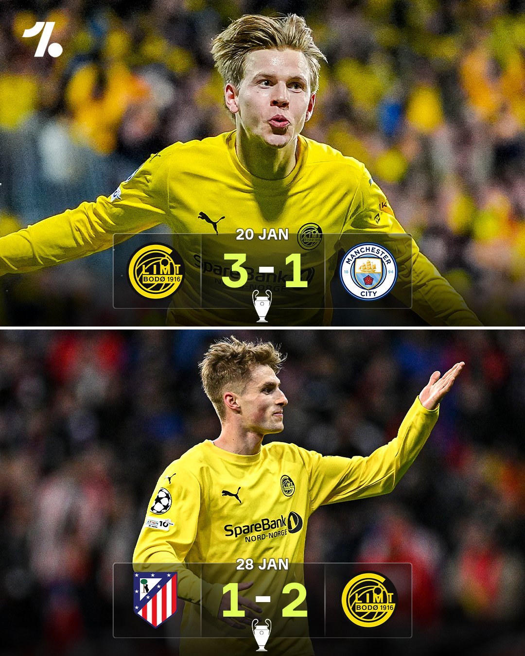 博德闪耀首次参加欧冠就成功晋级附加赛。主场击败了曼城,客场击败了马竞… 博德闪耀俱乐部位于挪威一个拥有5万人口的北极圈城市,8年前,他们还在挪威乙级联赛。虽然球场只能容纳8300人,在天寒地冻的欧冠雪夜,博德闪耀现在已经是豪门的噩梦。去年欧联杯,博德闪耀在半决赛惜败热刺,险些队史首进欧战决赛。