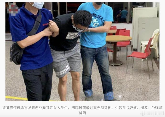 台男子杀害女子判死刑又改无期【马来西亚女子在台遇害,涉案男子被3次判处死刑后又改判无期,岛内医生斥判决丢脸】据台湾中时新闻网1月29日报道,台湾高雄男子梁育志涉性侵杀害马来西亚籍钟姓女大学生后弃尸山区,一审、二审及更一审(更审指重新审讯)均判处死刑。台湾地区“高等法院”高雄分院29日以梁某“非事前预谋性杀人,有教化可能”,改判其无期徒刑,引起社会哗然。