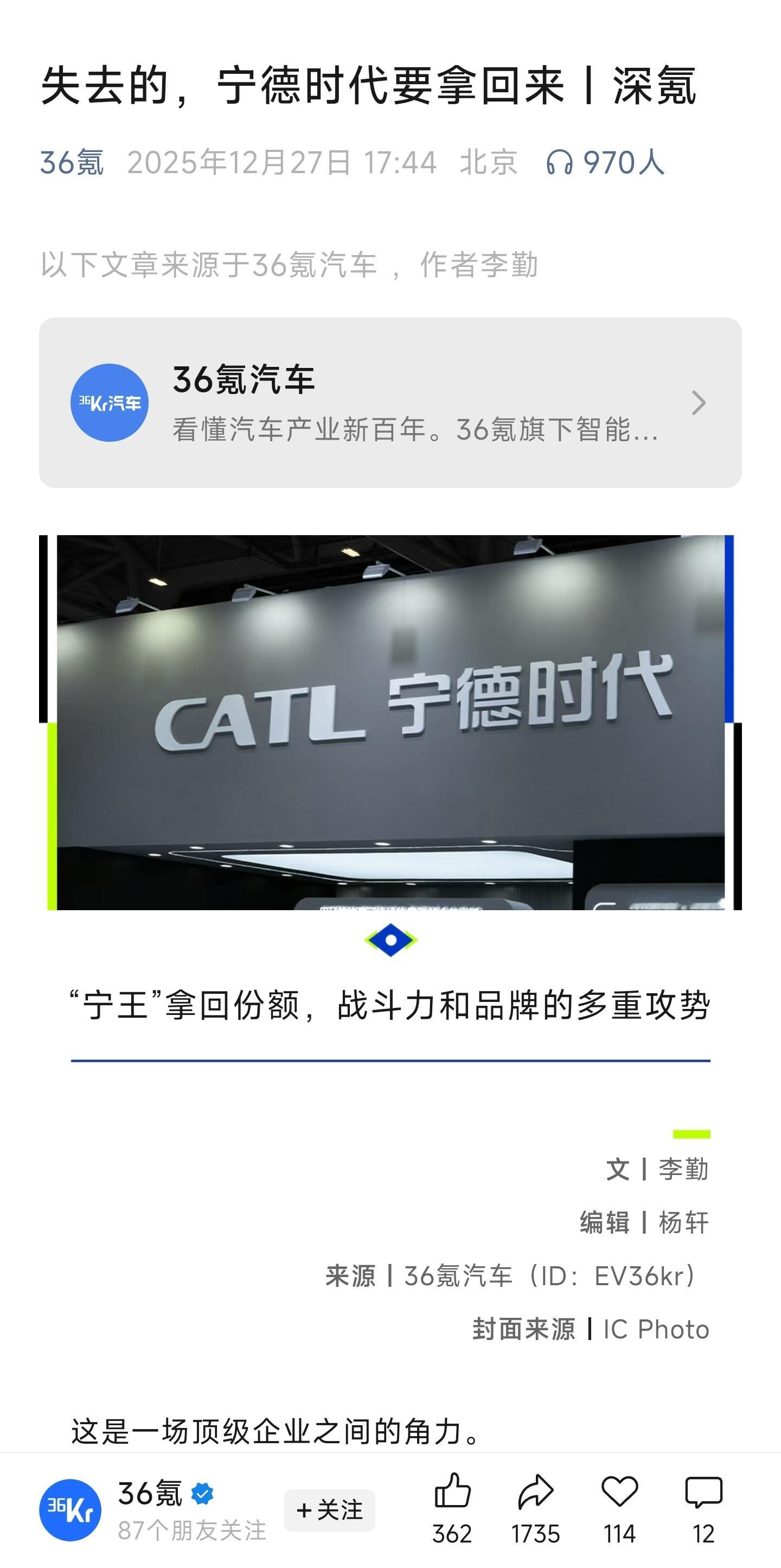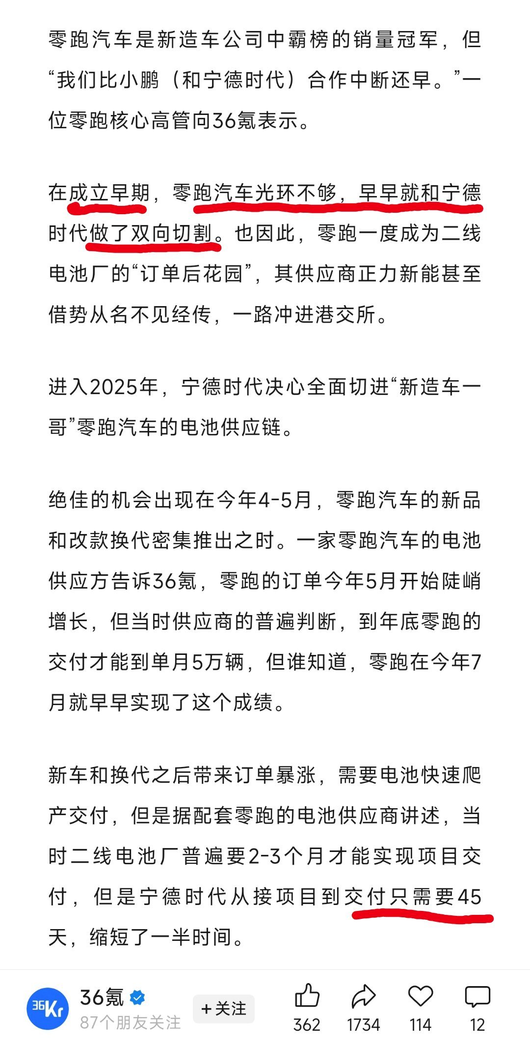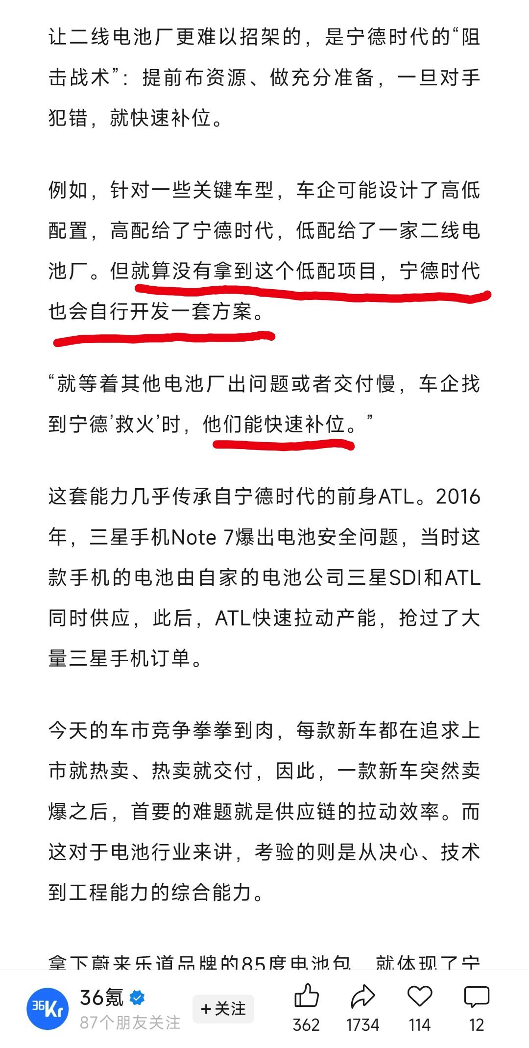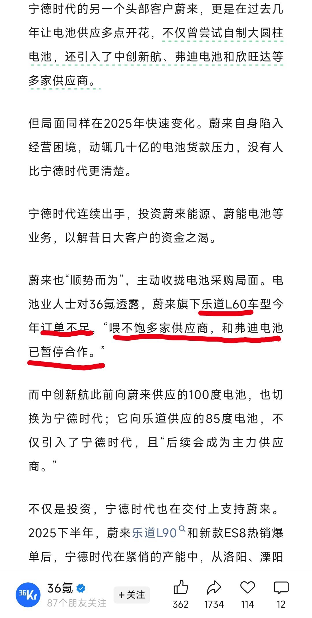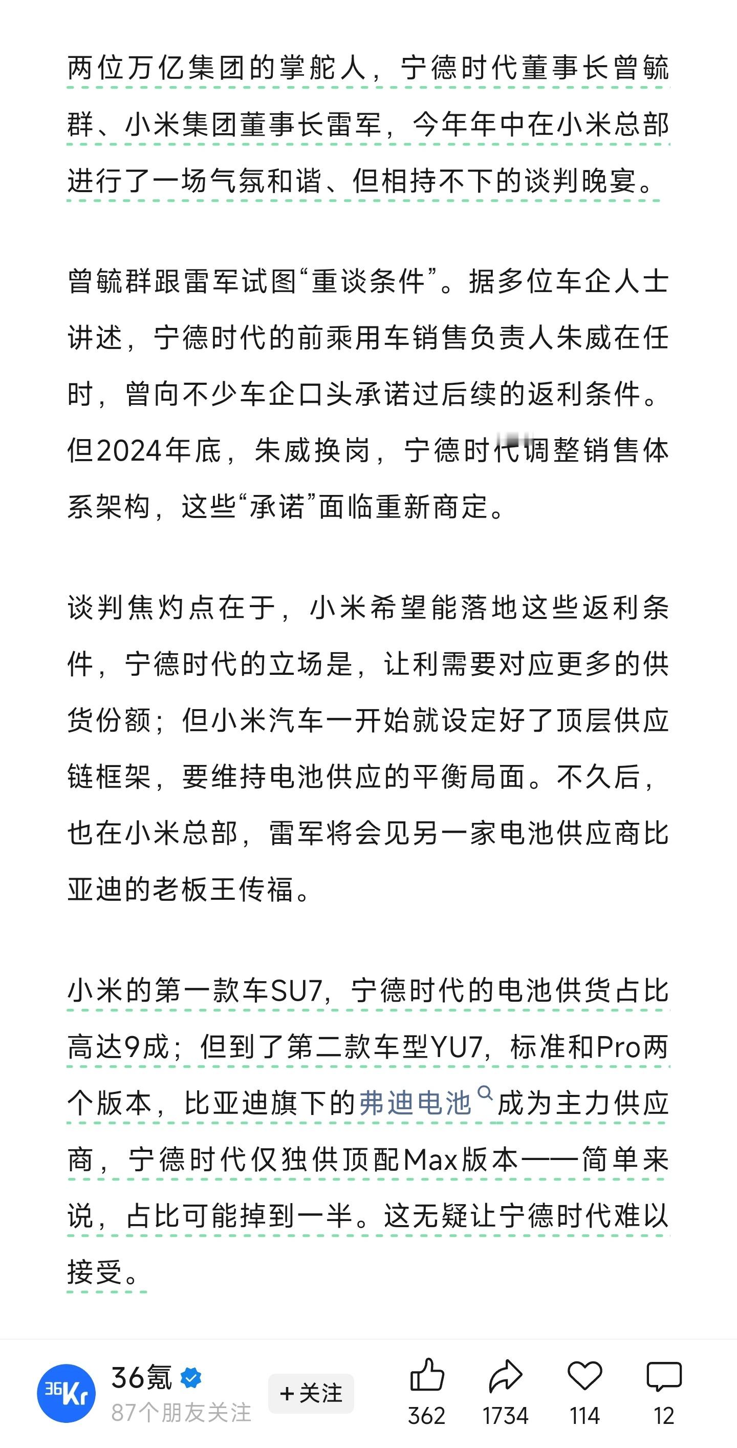 36氪这一篇信息量挺大的。不仅写了车厂和宁德之间的博弈,也描述了一些传言。文章结尾部分还提到了车厂对于供应商来说的技术障碍。有兴趣的同学可以找原文看看。