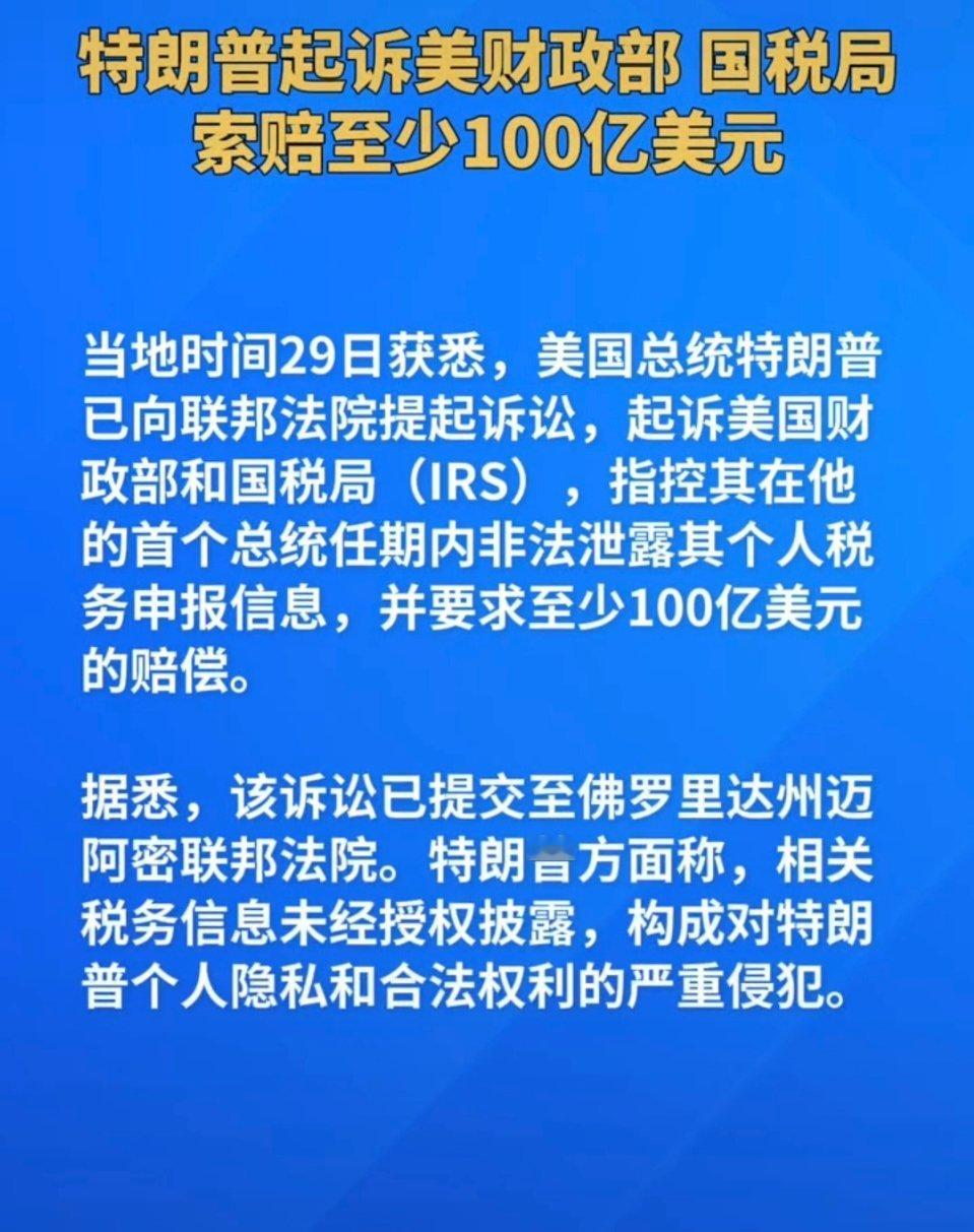 懂王起诉美国税局财政部索赔100亿美元!爽文都不敢这么写!
