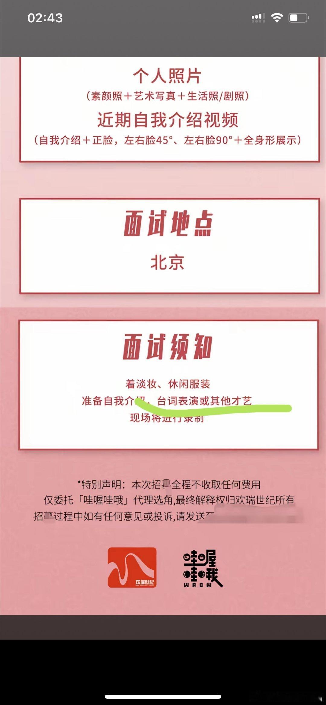 瑞瑞招聘新人,强调要求没有任何形式的经纪约(老呃那种一人两嫁是不可以了),还强调台词表演能力dddd