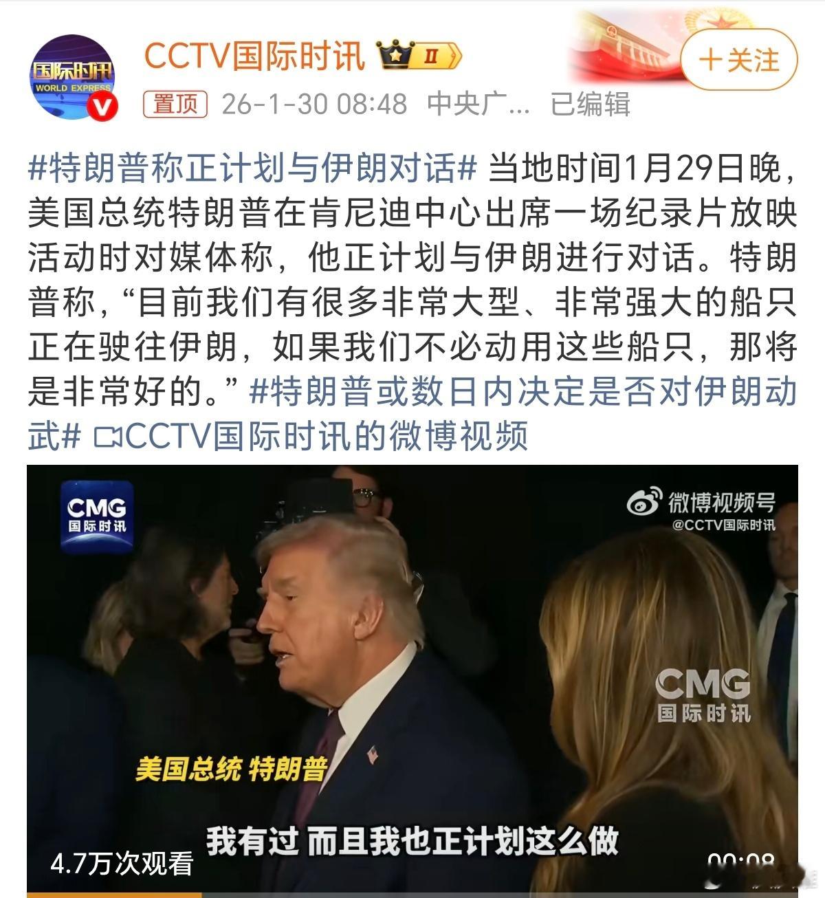 特朗普称正计划与伊朗对话打还是不打,总要有个决定,这样拖而不决,耗尽了吃瓜群众的耐心。。。
