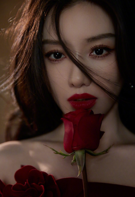 王鹤润复古红裙,红丝绒邂逅大波浪,一眼沦陷的复古浪漫~