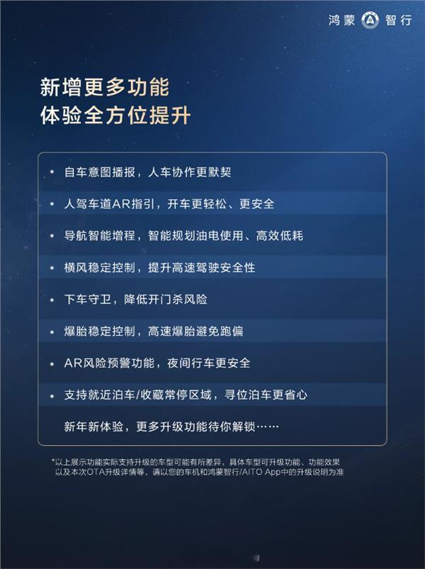 今天,华为鸿蒙智行迎来年度首次OTA升级,此次推送覆盖尊界、问界、享界、尚界等车型,带来63项新增功能与31项体验优化。鸿蒙智行鸿蒙智行公布新年ota详情尊界问界享界