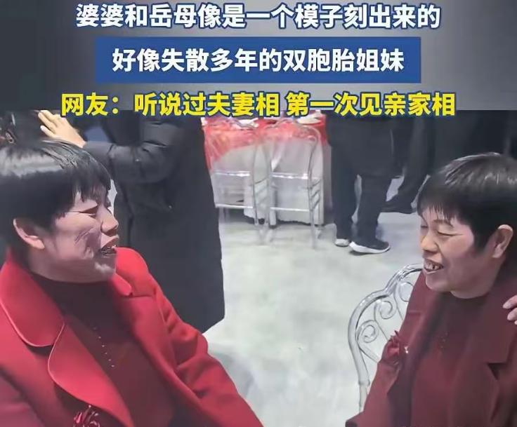 “解释不清了!”山东,一女子参加婚礼时,意外发现婚礼现场有2个大妈长得一模一样,她还以为是一对双胞胎姐妹,谁知,旁边人却告诉她,那2个大妈一个是新郎的妈妈,一个是新娘的妈妈,而且两人之前从未见过面!网友:不会是失散多年的亲姐妹吧? 事情还要从两个小姑娘说起,小高和小李是大学同学,两人处得特别铁,平时就跟亲闺蜜一样,无话不谈,有空就约着一起玩。 前段时间放假,小李想着小高从来没去过自己老家,就邀请她来家里做客,顺便带她看看家乡的风景,小高一口就答应了。 出发前,小高还特意准备了一些小礼品,收拾好东西就跟着小李回了山东老家,一路上两人有说有笑,特别开心。 巧的是,她们到家的那天,小李家的邻居正好办婚礼。邻居一大早就过来跟小李父母打招呼,让他们中午务必带着家人过去喝杯喜酒。 邻居看到小李带了同学回来,也特别热情,连忙招呼小李,让她中午把小高也一起带上,人多热闹,也算给新人凑个喜气。 小李和小高本来就没什么事,想着去凑凑热闹也不错,就爽快地答应了。中午时分,两人收拾了一下,就跟着小李的父母一起去了邻居家。 一进婚礼现场的院子,小高就被两个穿红衣的大妈吸引住了。她们坐在一起有说有笑,眉眼、鼻子、嘴巴长得几乎分毫不差。 就连剪的短发发型,还有笑起来时眼角的纹路,都像是一个模子里刻出来的,小高心里暗暗嘀咕,这俩人肯定是双胞胎姐妹。 可她又有点疑惑,这两个大妈看着也有五六十岁了,按说早就各自成家了,怎么会一起过来参加同一场婚礼,难道是这户人家的共同亲戚? 小高忍不住小声问小李:“这俩大妈是不是双胞胎啊?长得也太像了吧。”小李听了噗嗤一笑,回了她一句:“哪是什么双胞胎,一个是新郎妈,一个是新娘妈。” 小高一听直接愣住了,满脸的不可思议,又特意扭头看了半天,越看越觉得神奇,怎么看都不像是没有血缘关系的人。 旁边一位看热闹的客人,听到她们俩的对话,笑着插了一句:“你们不知道,这俩亲家母,家隔着几十公里呢,在此之前,从来没见过面。” 小高听了之后,更是连连惊叹,天底下竟然有这么巧合的事,两个素未谋面的人,因为儿女的婚事相遇,还长得如此相似,实在是太奇妙了。 后来,有人把婚礼现场的这一幕拍了下来,发到了网上,没想到一下子就火了,网友们看了之后,也都炸开了锅,纷纷留言热议。 有不少网友表示,这长相实在是太像了,建议这两位大妈去做个亲子鉴定,说不定就是失散多年的亲姐妹,只是一直不知情而已。 还有网友感慨,要是没有任何血缘关系,又住得那么远,大半辈子都没有交集,却能长得如此相似,真的没法解释,只能说是冥冥之中的缘分。 这件事确实是太神奇了,说是百年难遇也不为过。不管这两位大妈有没有血缘关系,这份缘分都足够珍贵。 儿女的婚事,本就是一件天大的喜事,又遇上这样一桩奇事,更是为这场婚礼增添了不少欢乐和话题。 往后的日子里,她们既是亲家,又有着这样奇妙的缘分,想必也能相处得像亲姐妹一样和睦。也祝福这对新人,能借着这份奇妙的缘分,相守一生,幸福美满。 说到底,缘分这东西真的很奇妙,它总能在不经意间,给我们带来意想不到的惊喜,也让两个陌生的人,因为一场婚礼,结下了不解之缘。