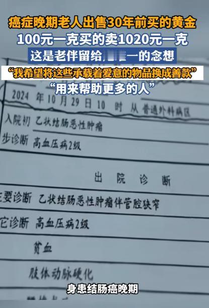 泪目!北京一87岁老太患癌,她卖了自己30年前的2件黄金首饰,当初是100元每克