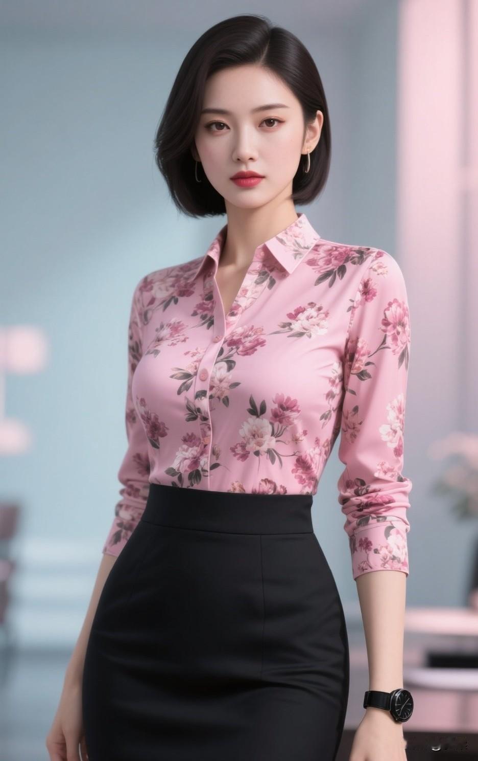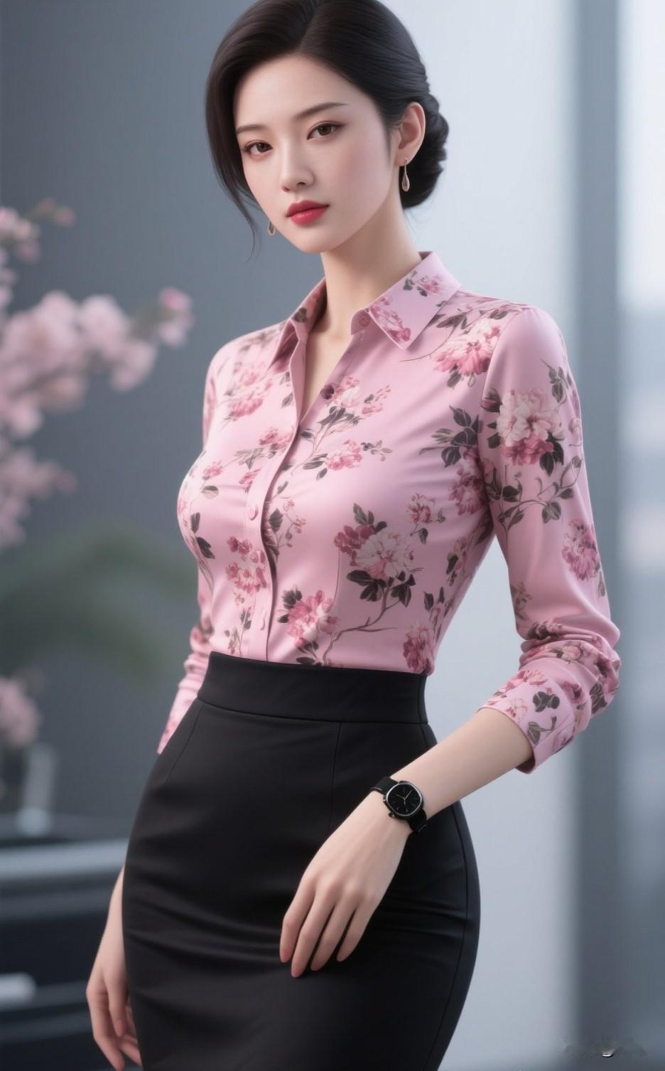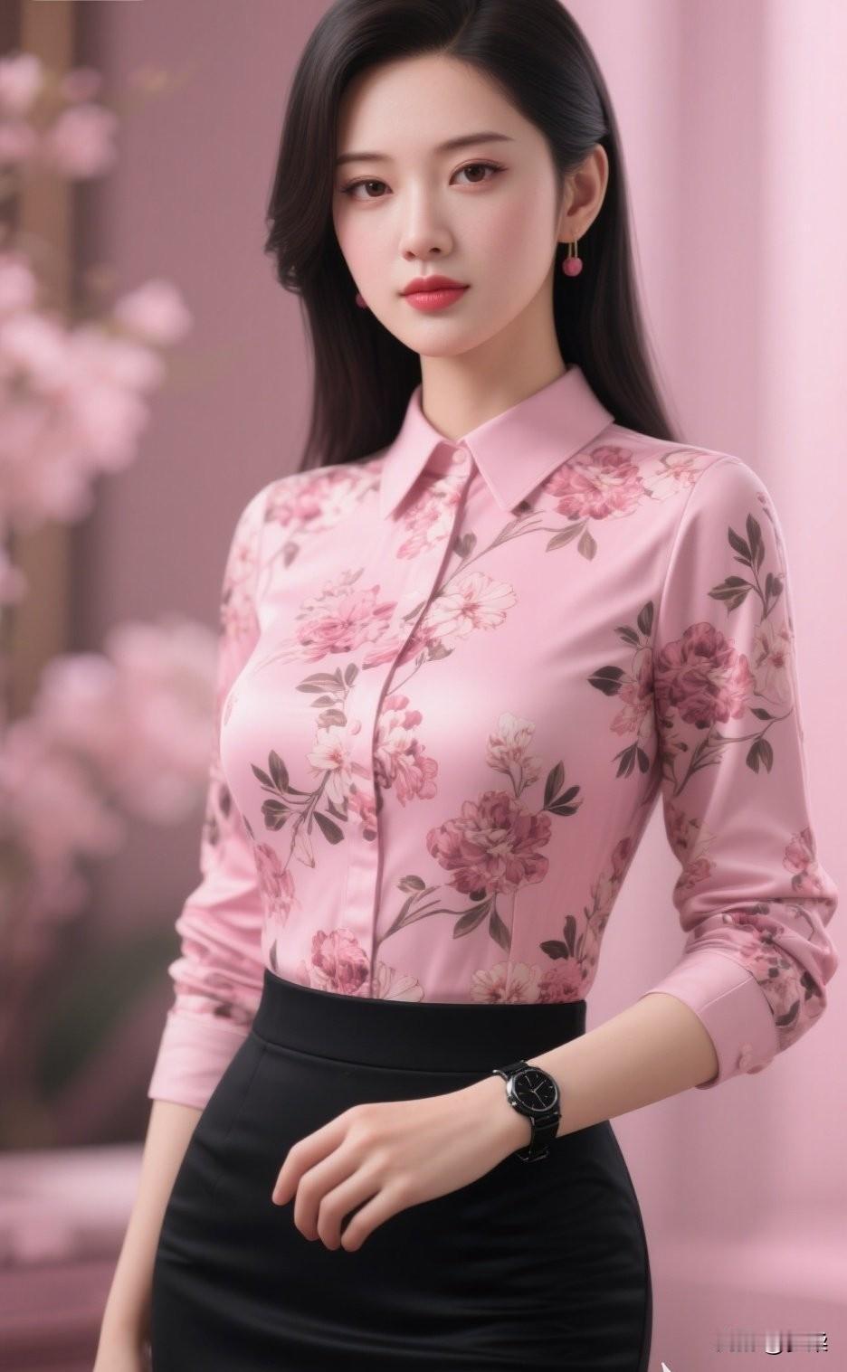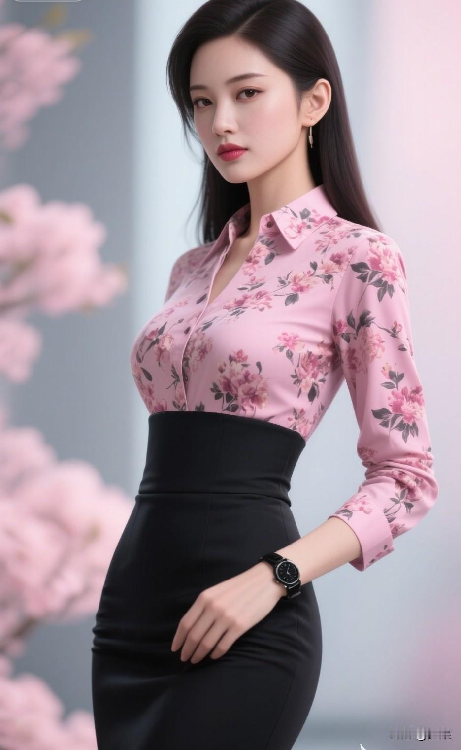 职场轻甜风穿搭 粉调底衬着柔婉花枝的衬衫,打破职场着装的沉闷刻板,高腰包臀黑裙则勾勒出利落腰线。 甜而不腻的配色,让温柔与干练完美平衡,既适合商务会议,也适配日常通勤,是都市丽人的优雅之选。职场温柔风穿搭