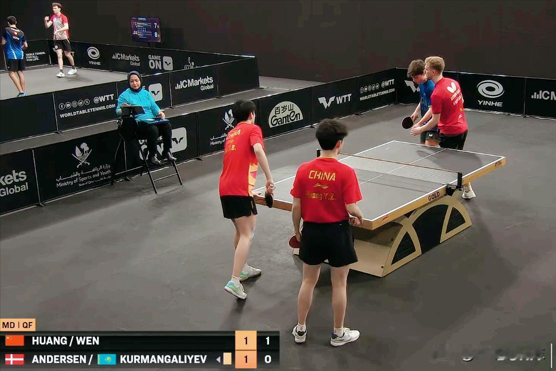 突发!裁判给温瑞博/黄友政对手黄牌了。 第一局两队打的不相上下, 最终温瑞博/黄友政12:10拿下, 由于对方红衣服选手不冷静, 愤怒将球打向地面, 被裁判看到了 第二局开局直接给了黄牌。 第三局开局直接扣分, 将他们心态罚崩了,哈哈 最终温瑞博/黄友政3:1拿下对手。
