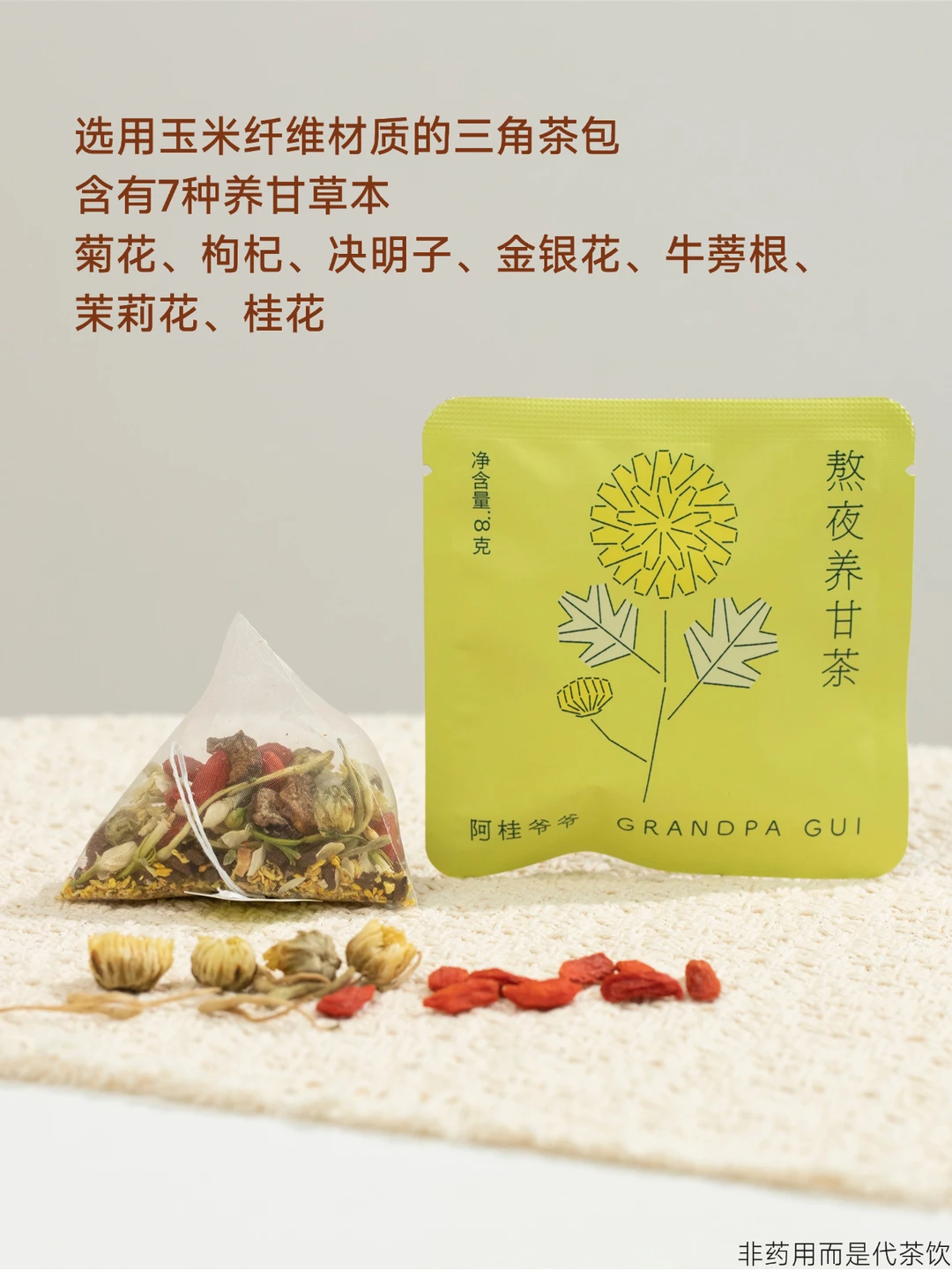 一熬夜总感觉口干烦躁, 整个人特别“上火”[火R] 额头、下巴还反反复复冒很多火痘 所谓“肝净≈脸净” 爱熬夜,痘痘反复长的男生 建议喝上这杯清凉的菊花养甘茶 食材:菊花、决明子、金银花、枸杞、牛蒡根 另外有茉莉花清香 + 桂花的香甜 喝起来一点不苦!!! 草本自带的香气,带来甘甜清润的口感 每天泡一壶,感觉身上的燥气都淡了不少 新春市集 下单85折拿下20包[爆炸R] 单笔满额还有对应的养生好礼打包赠送~ 熬夜肝火旺、痘痘多的男生 快趁现在囤上养甘茶,时刻清润! - 非药用而是代茶饮