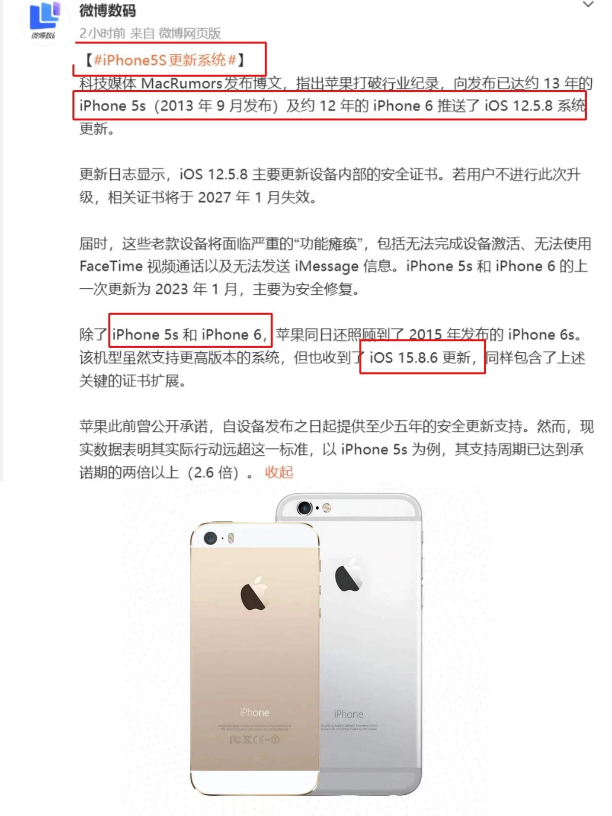 家里老iPhone还能再战 刚看到iPhone5s和6s居然还能更新系统,有点感
