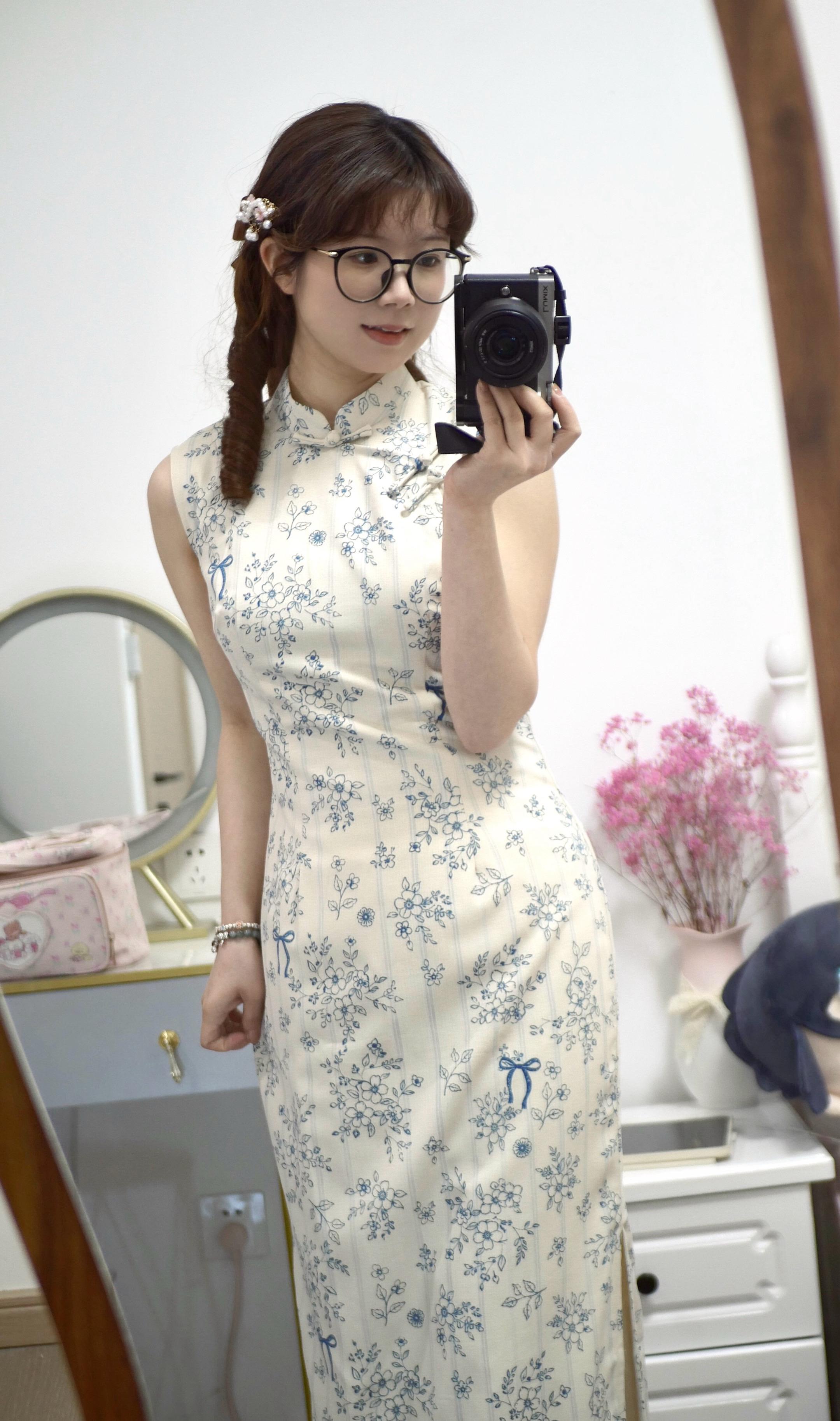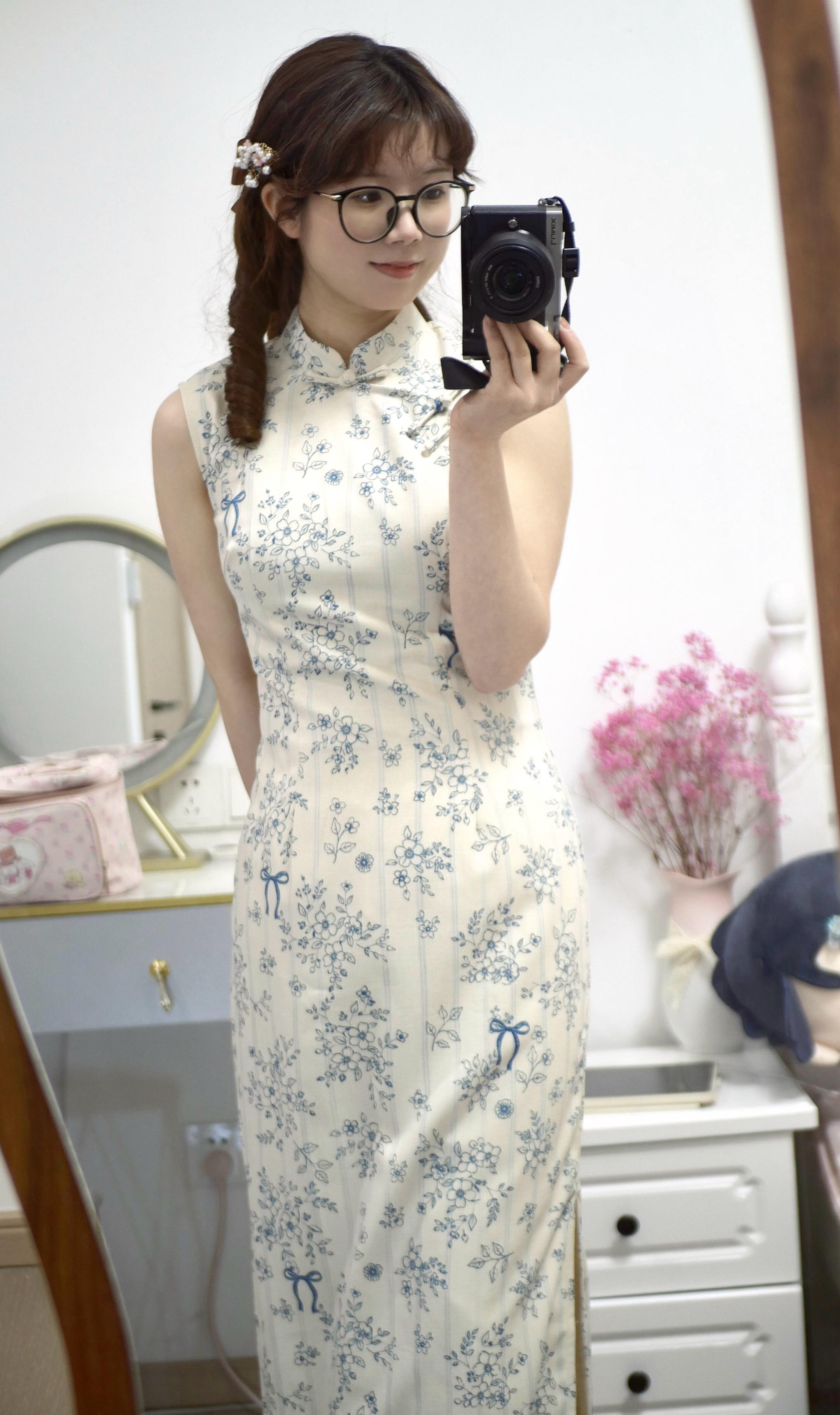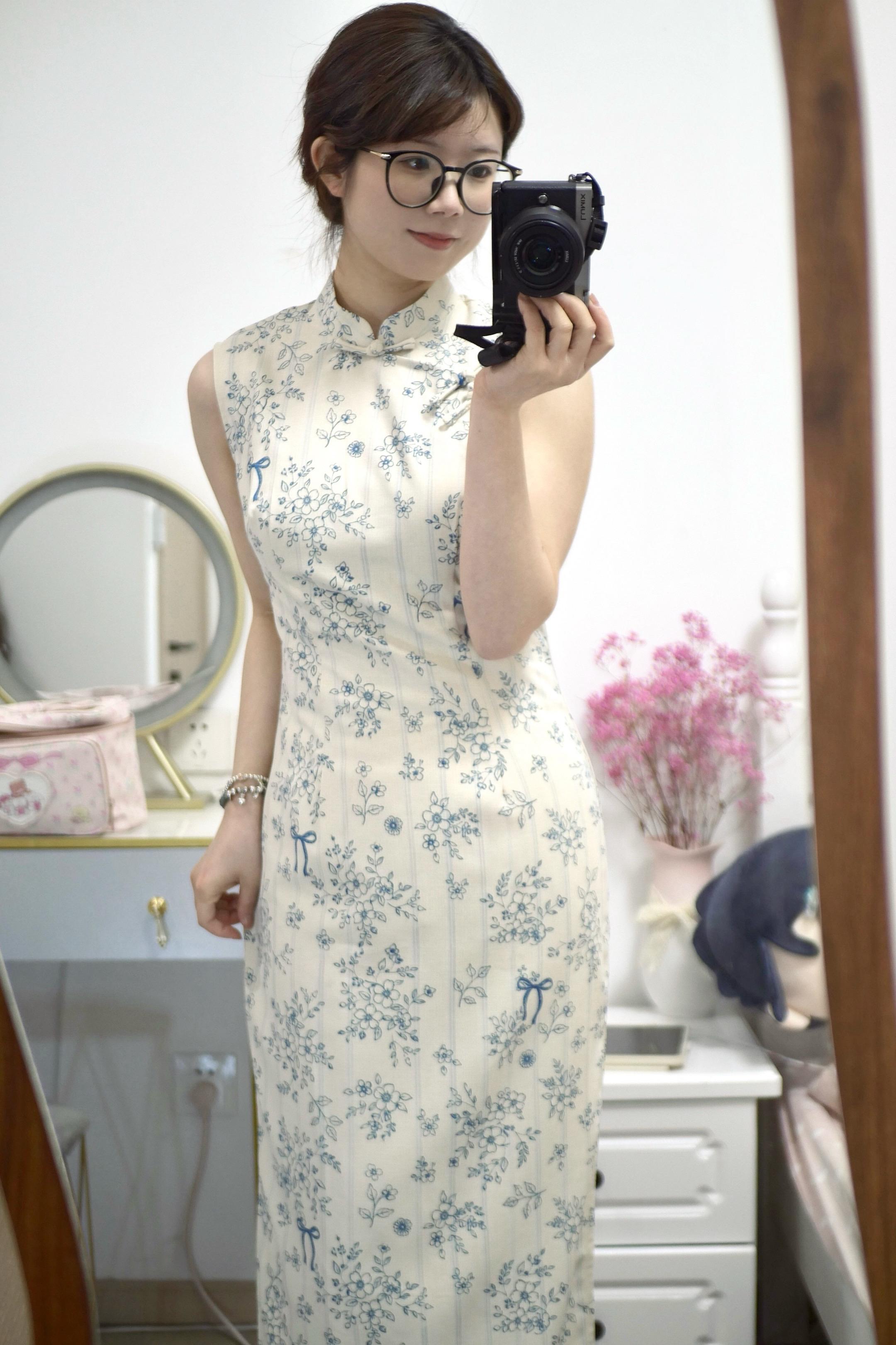 特别有少女感的碎花蝴蝶结旗袍~👗花满絮
