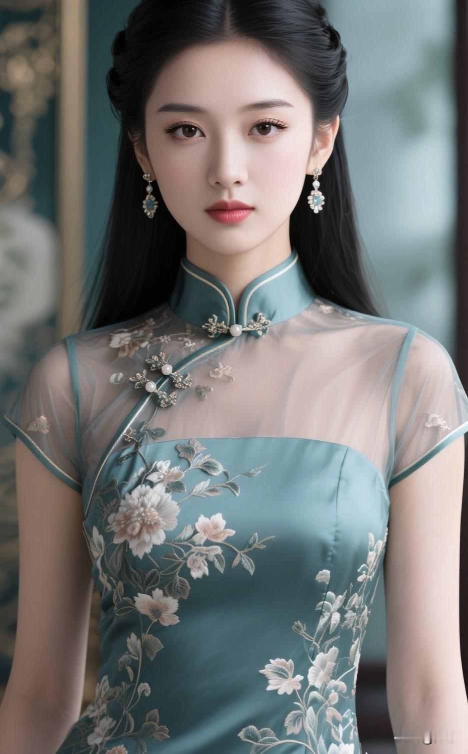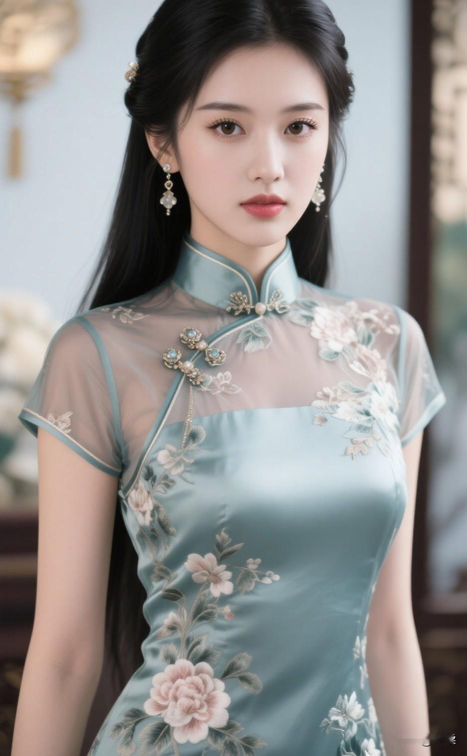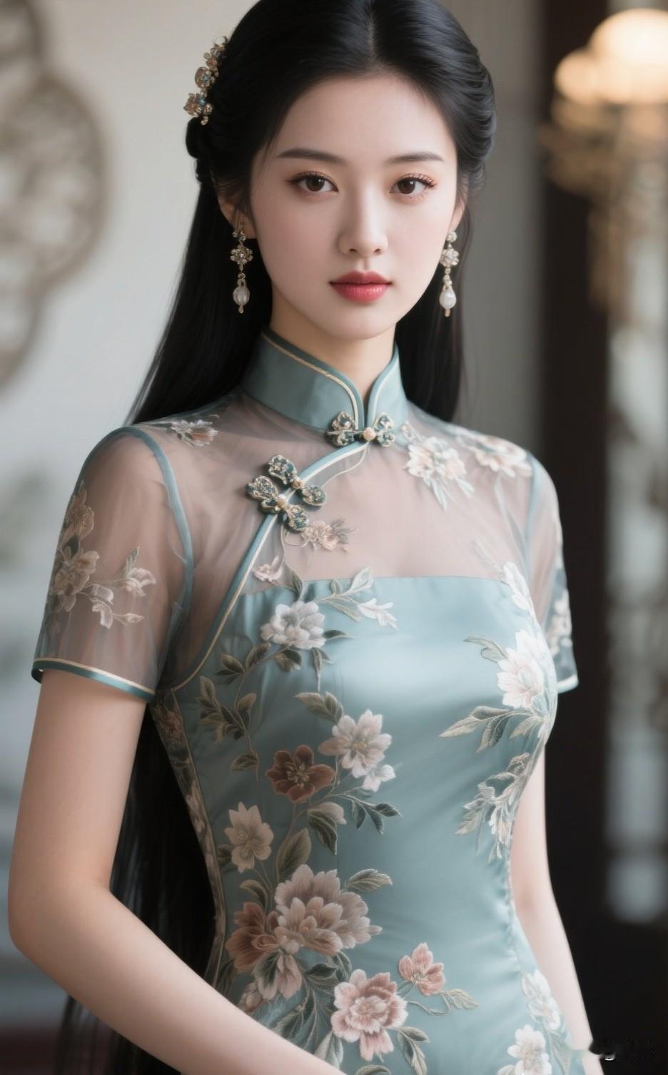 温柔甜美的少女,复古旗袍,优雅动人