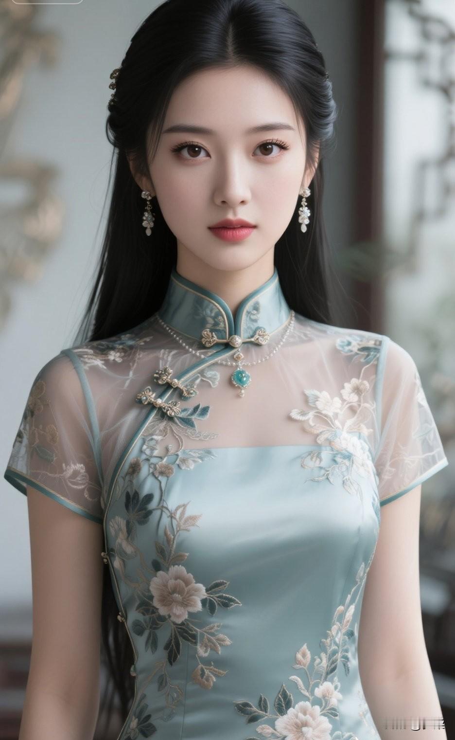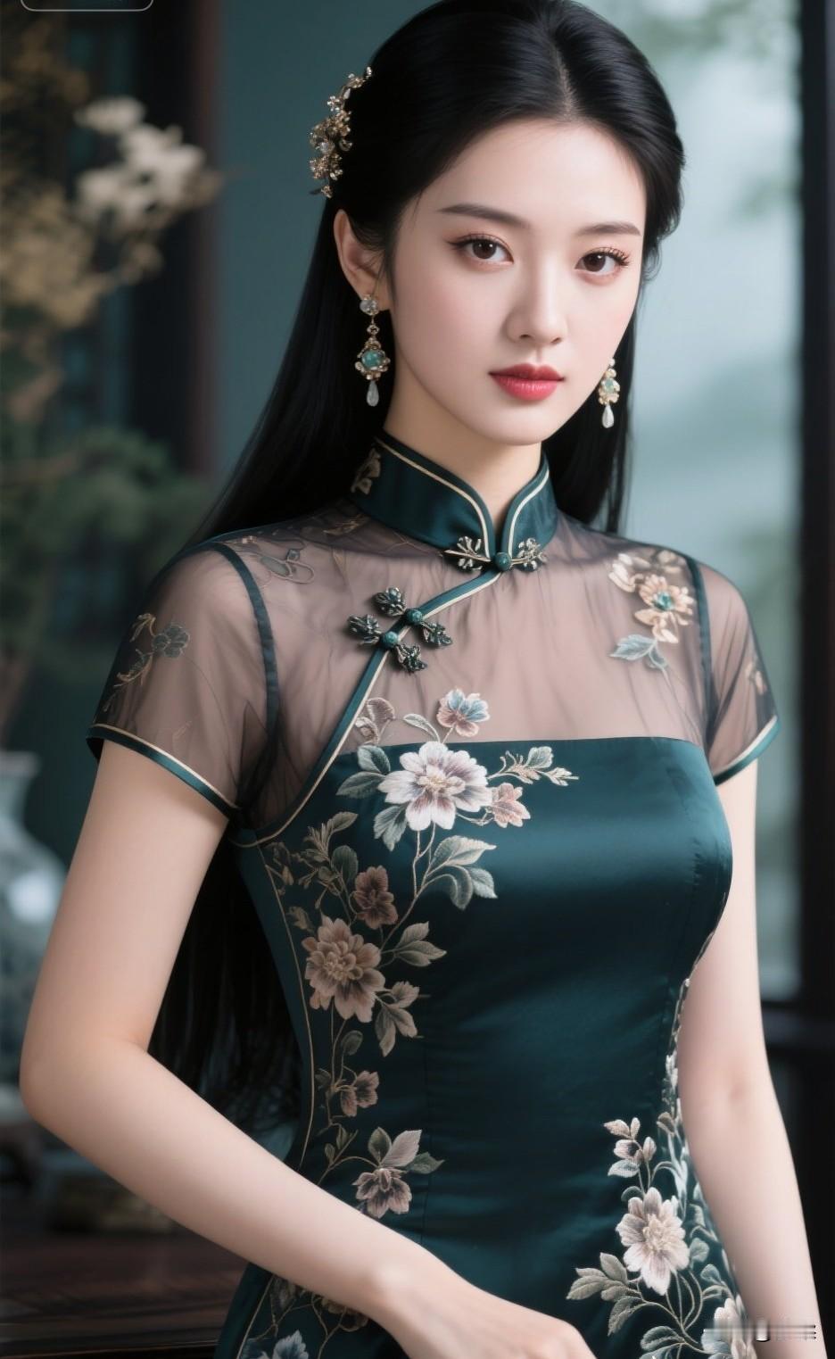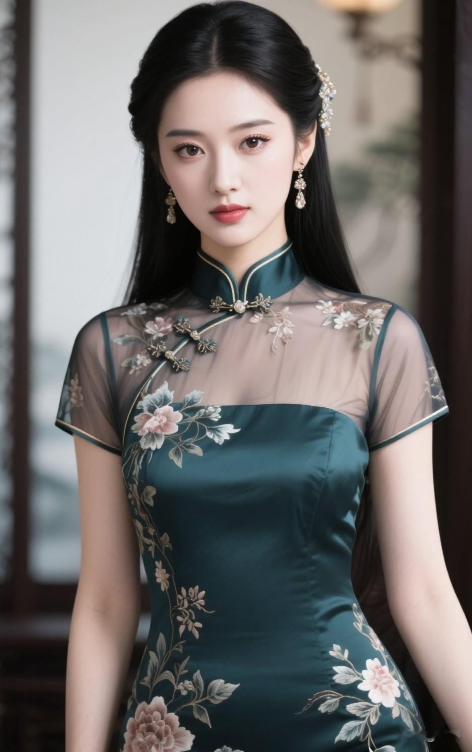 温柔甜美的少女,复古旗袍,优雅动人