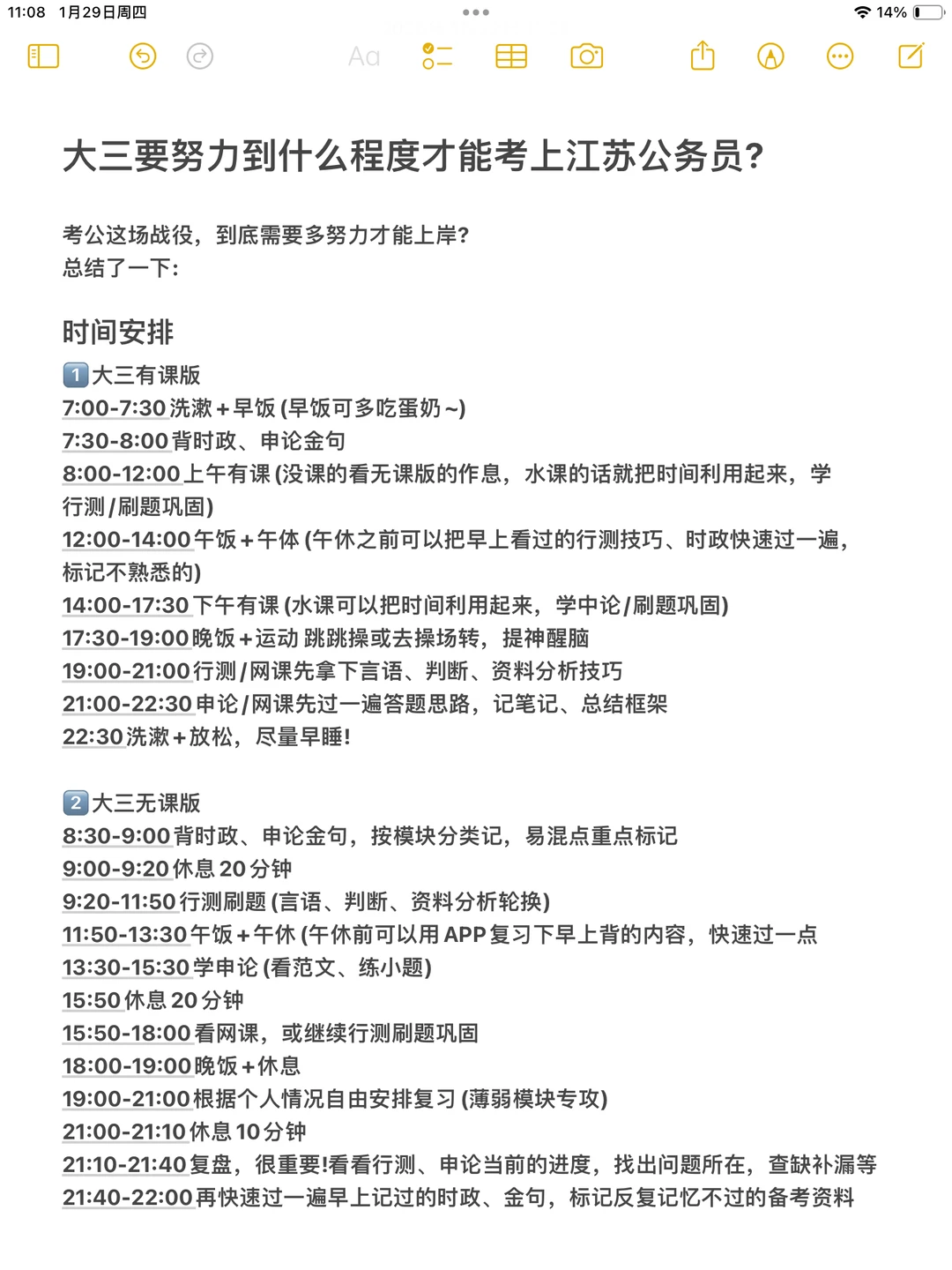 行测开始模块刷题,每天练习量(言语20+判断15+资料15+数量10+常识10),听申论课程,规定一周休息一天,劳逸结合,每天早上花30分钟听听新闻联播,就当听故事,开学后可以泡泡图书馆