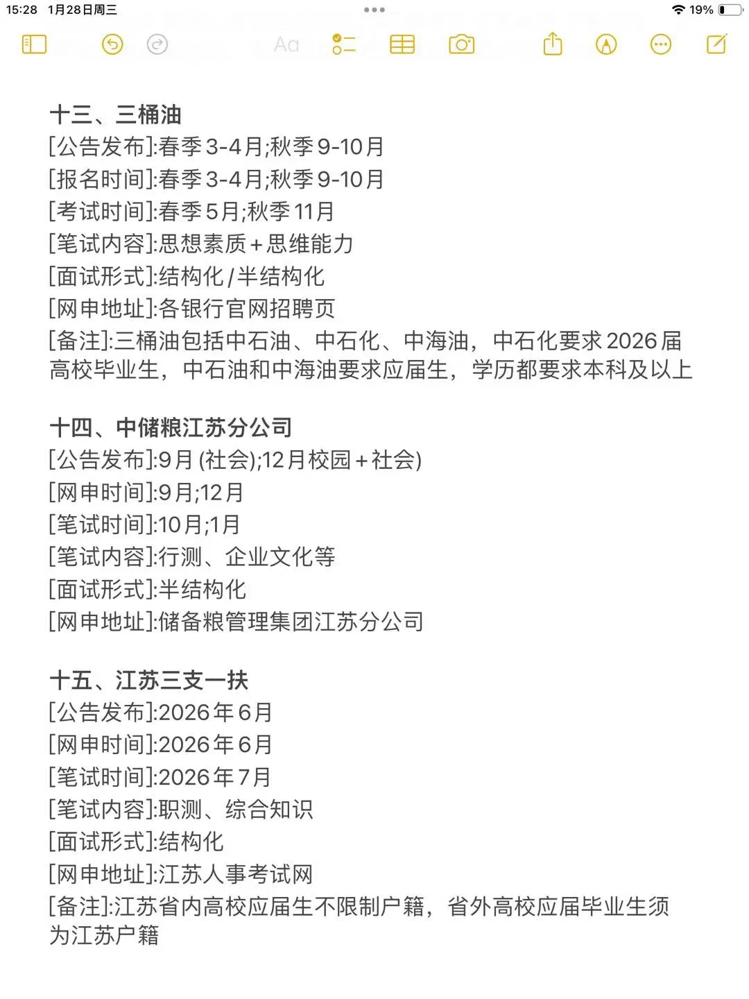 14、中储粮江苏分公司:9/12月报名,10/次年1月考试
