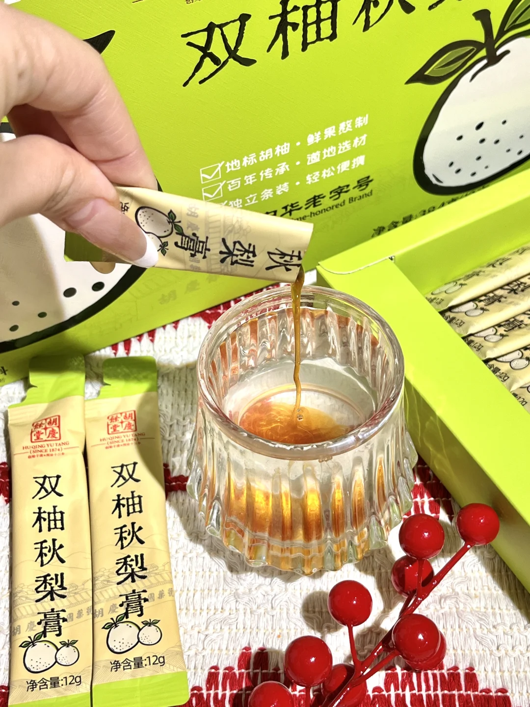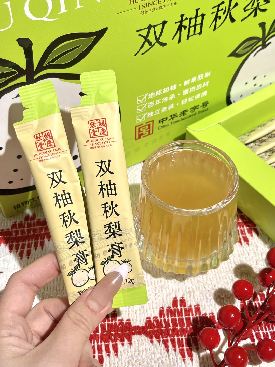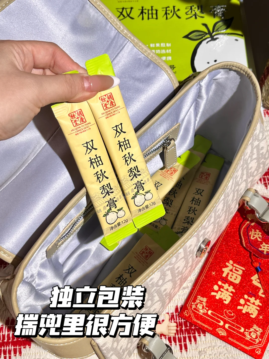 冬天地暖干燥加上天天说话,喉咙干得发紧😭光喝水根本不管用。 去山姆发现了这个秋梨膏,是独立小条装,揣包里通勤超方便👜, 有点柚子的微苦,接受不了的可以温水泡着喝,一点不齁腻🍐,喝下去感觉润润的,咳嗽的时候喝也很不错,家里长辈嗓子不舒服也可以试试 过年送礼也合适,送亲戚朋友有面儿。已经囤了好几盒,家里、办公室、送礼都备上,山姆可千万别下架!