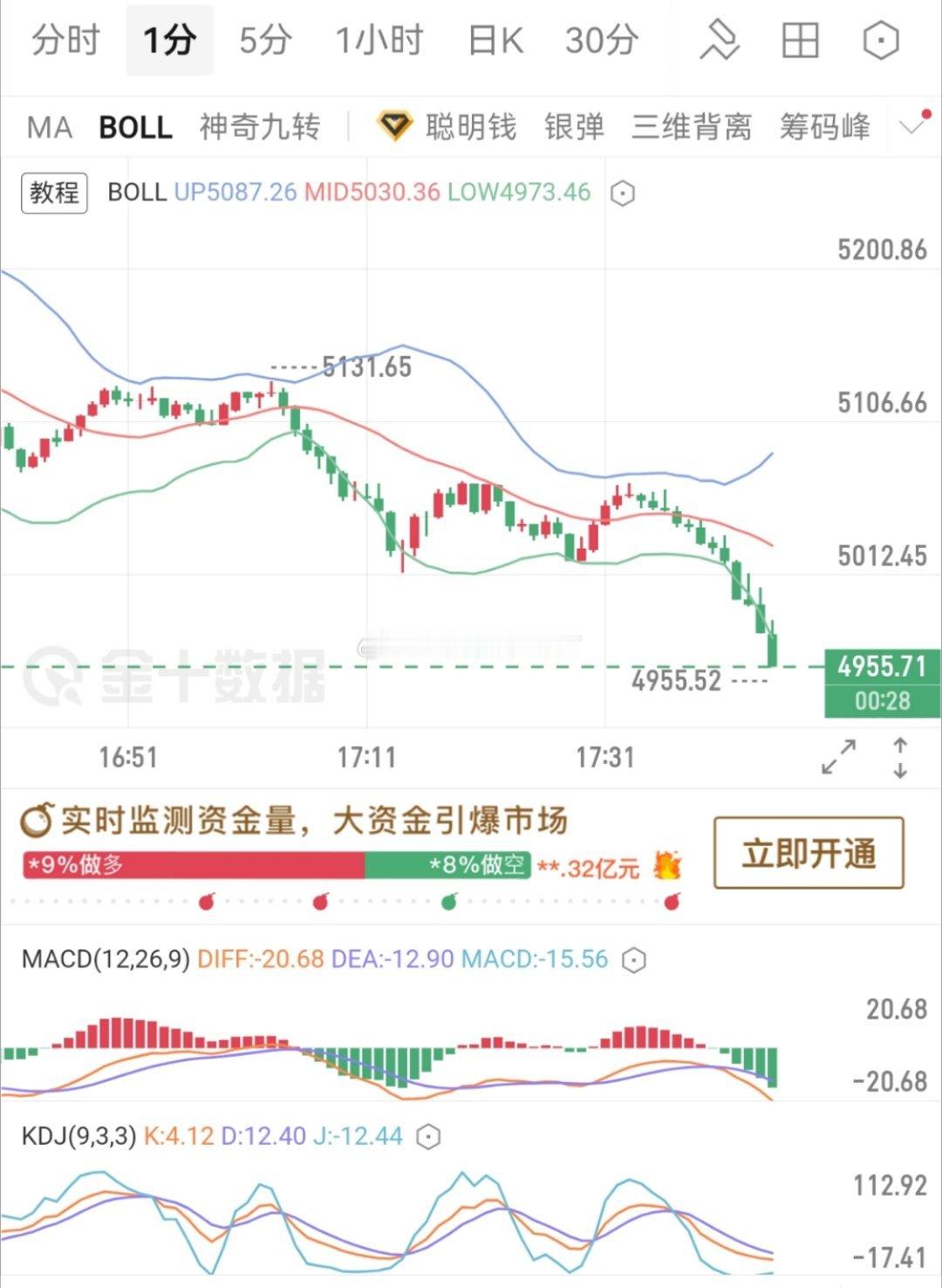 哎,5100多的时候还在和粉丝朋友说今天看破5000盎司,两个钟头的时间,直接大跌,多头的兄弟们收手吧