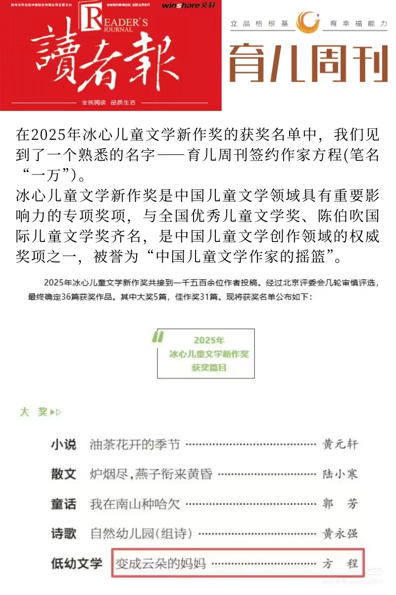 专访冰心奖得主、育儿周刊签约作家