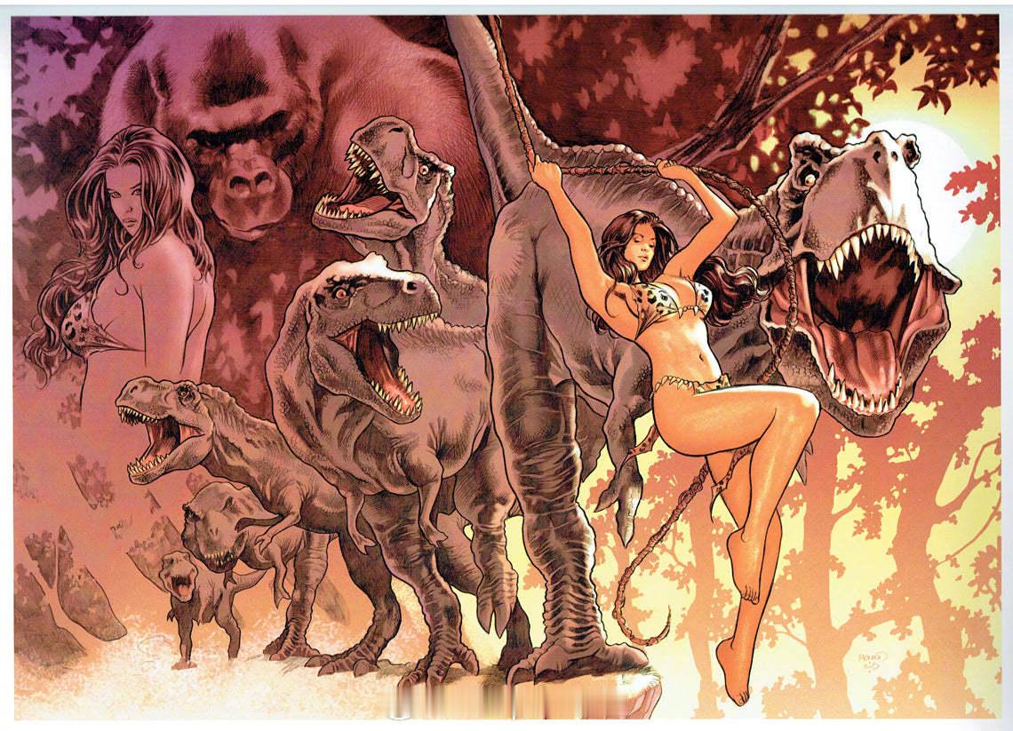 兵器影像 《穴居女郎》是一部由巴德·鲁特创作并绘制插画的长篇漫画系列,于1993年首次亮相。该系列融合了史前冒险、通俗奇幻与美艳画风,讲述了一位强壮而充满野性的女主角在残酷的原始世界中求生的故事。IP世界里遍布恐龙、敌对部落,充满了野蛮的生存斗争。