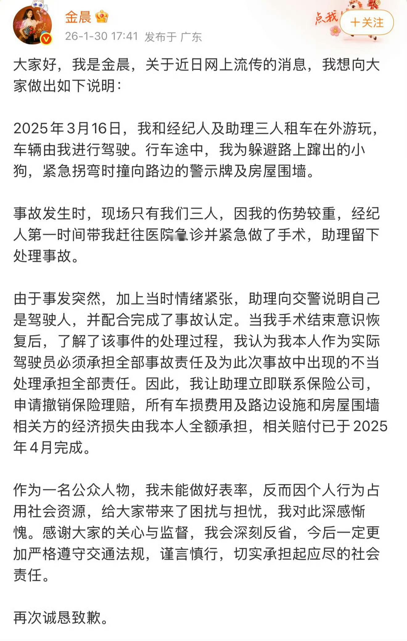 交警回应金晨被曝肇事逃逸曝金晨肇事逃逸保险公司调监控才发现是金晨开车没掉包
