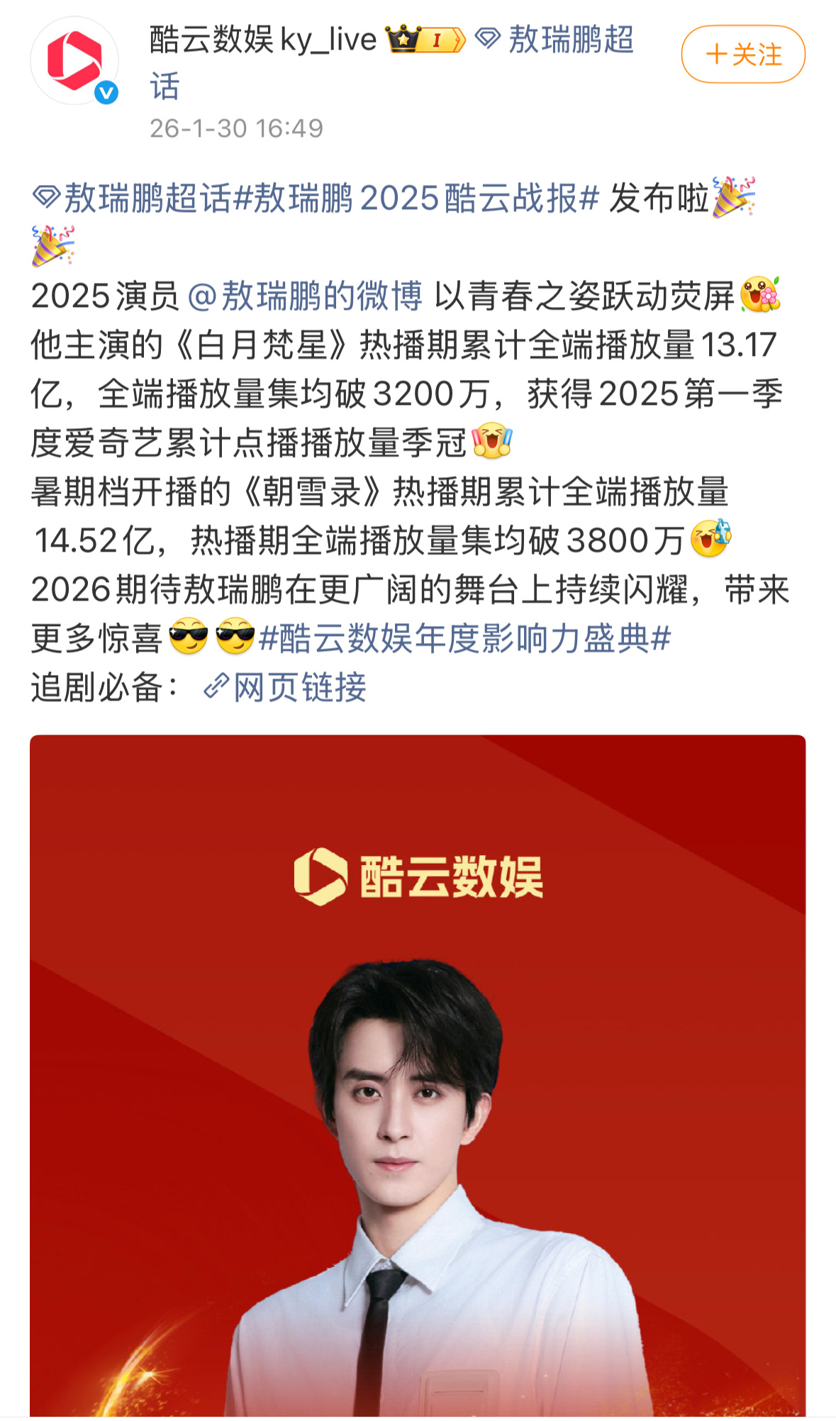 敖瑞鹏酷云战报,2025年半年两部大爆剧,🔥🔥的很安心。