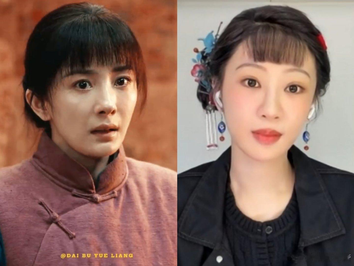张天爱跟素人合影,胯真的好宽,大宅院似的