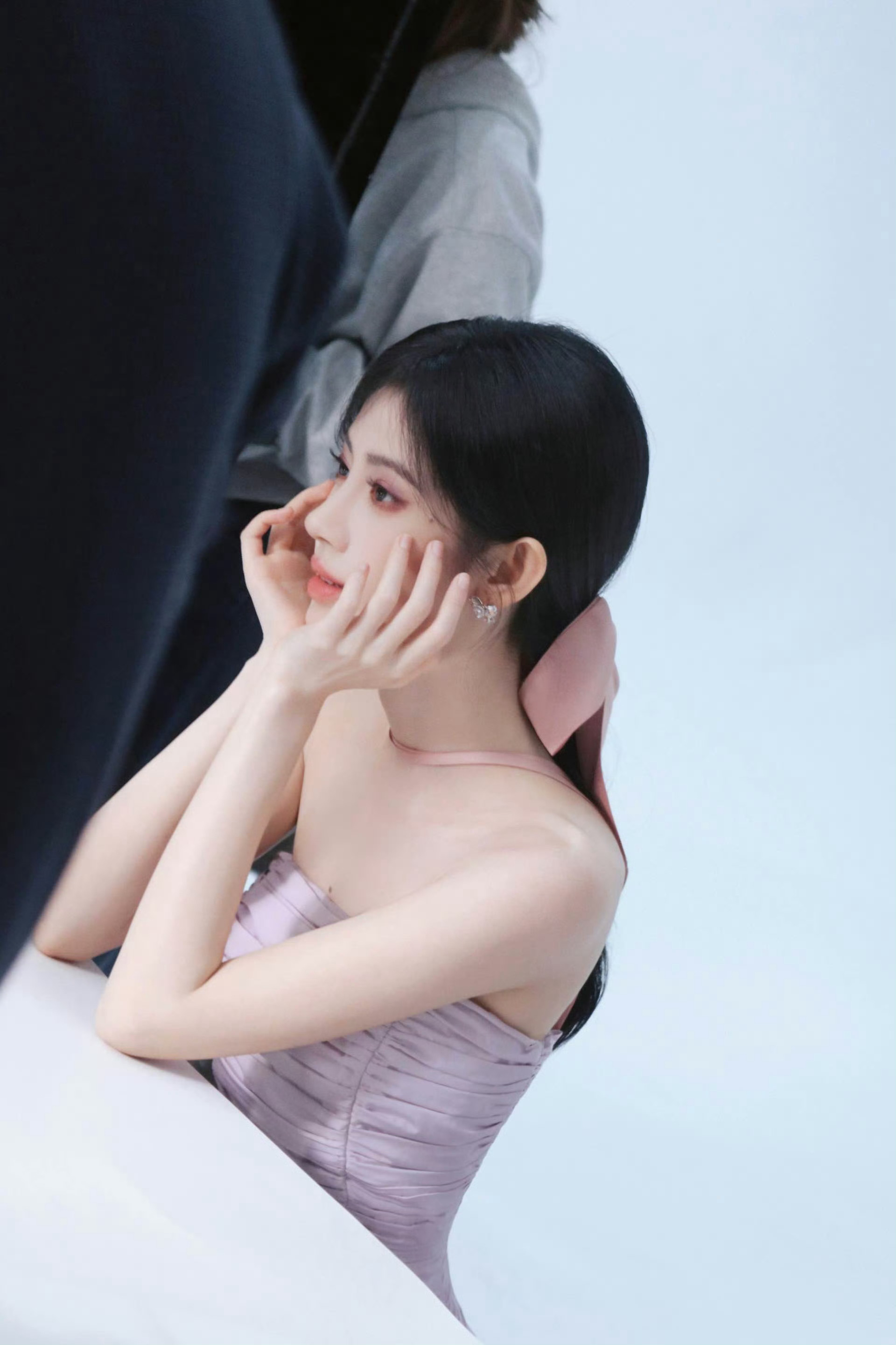 鞠婧祎抹胸紫裙鞠婧祎绸缎粉裙当鞠婧祎穿上抹胸紫裙,神秘而迷人;换上绸缎粉裙,