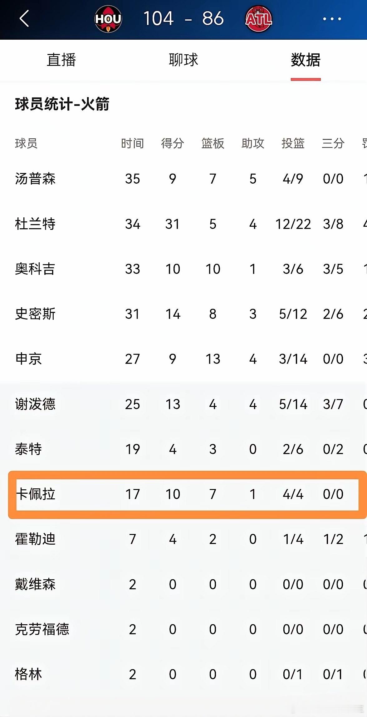 火箭中锋卡佩拉真会说话!在今天火箭客场104:86大胜老鹰后的采访中,卡佩拉谈到了亚当斯因伤赛季报销的事。他说:“我得做好回归主力阵容的准备,随时顶上。虽然我不是亚当斯,但我会尽力帮球队。能有机会为球队出力,我特别开心。”说实话,今天比赛里,卡佩拉完全复制了亚当斯的表现,无论是抢前场篮板还是篮下得分,都完成得非常棒。nba火箭终结老鹰四连胜