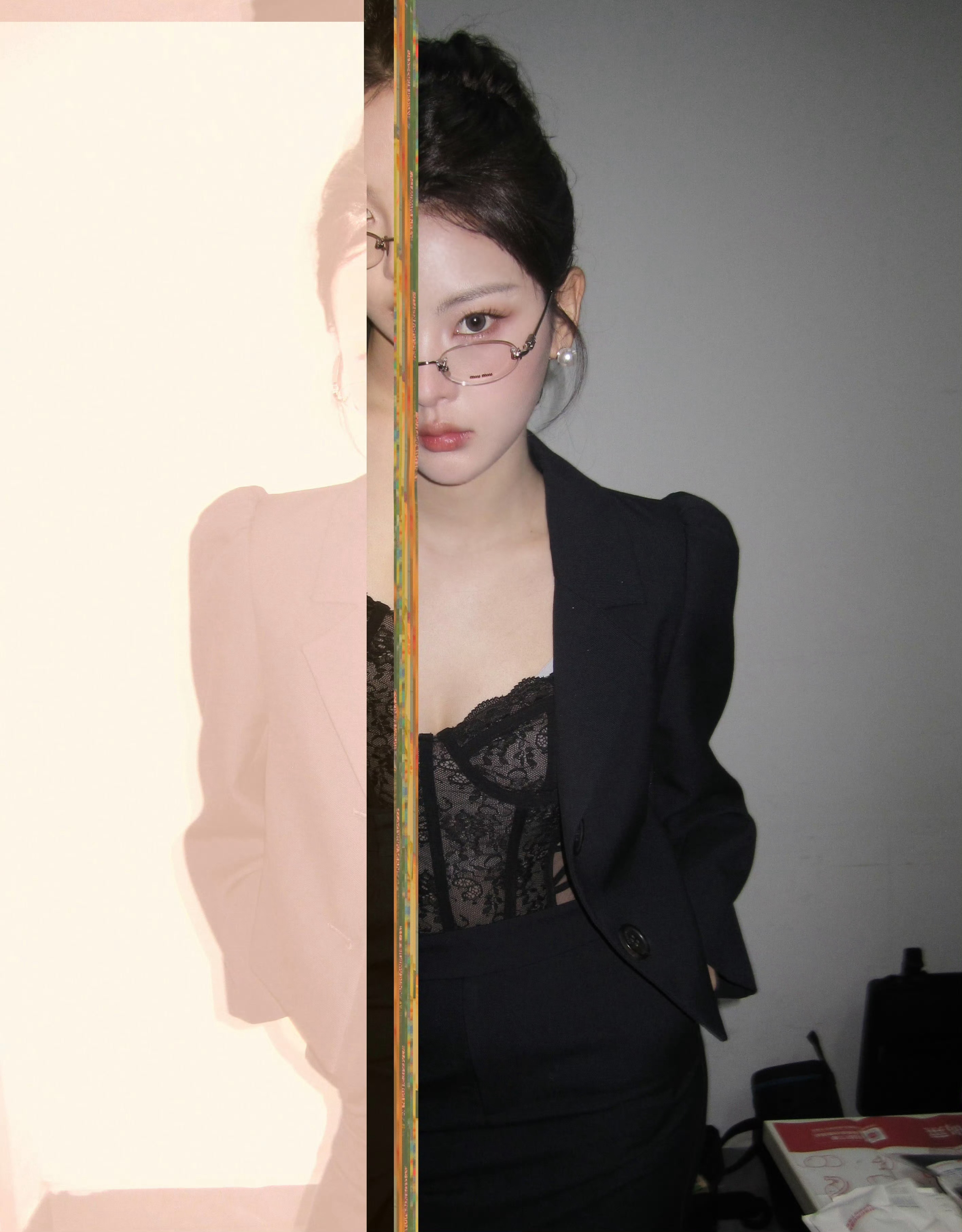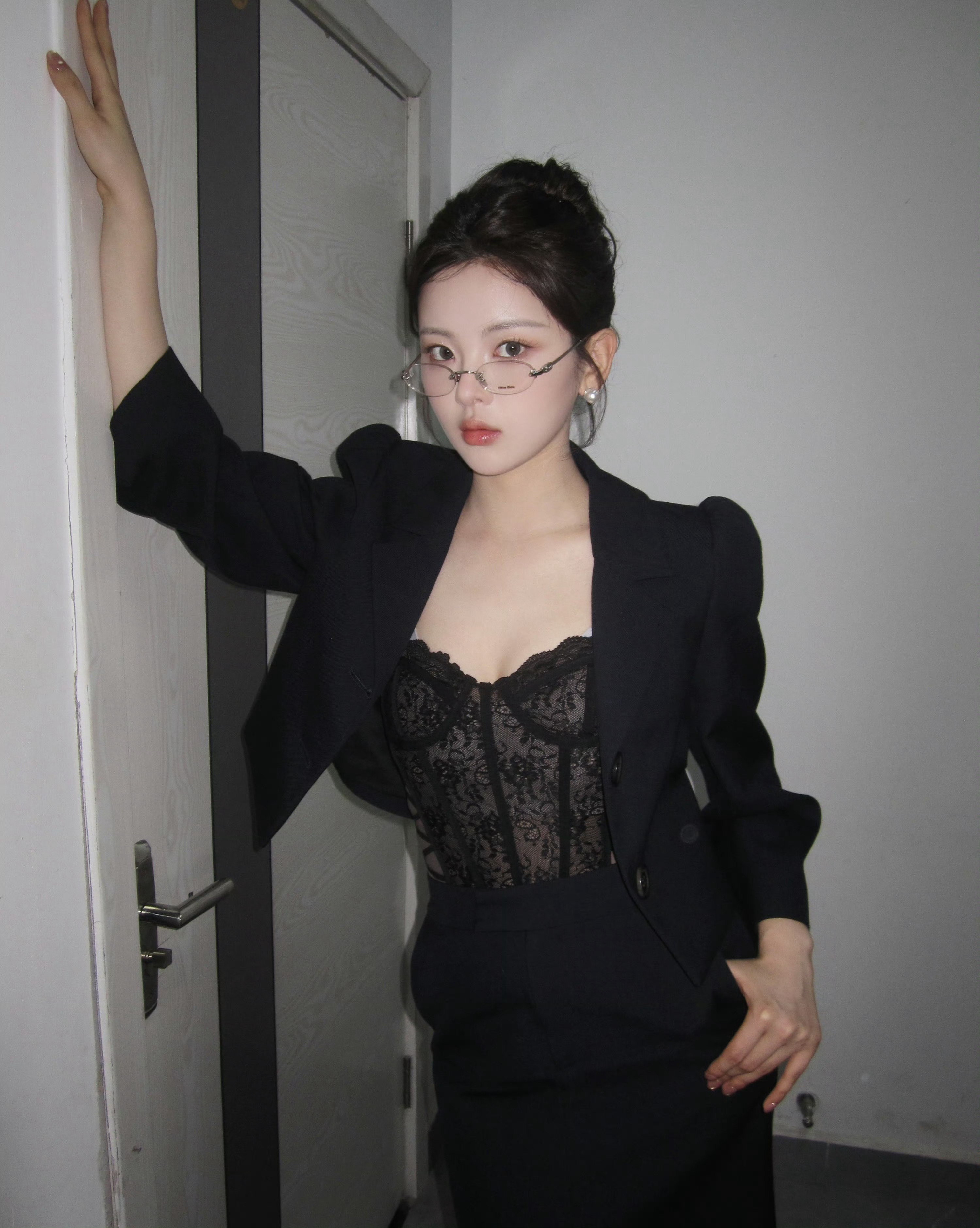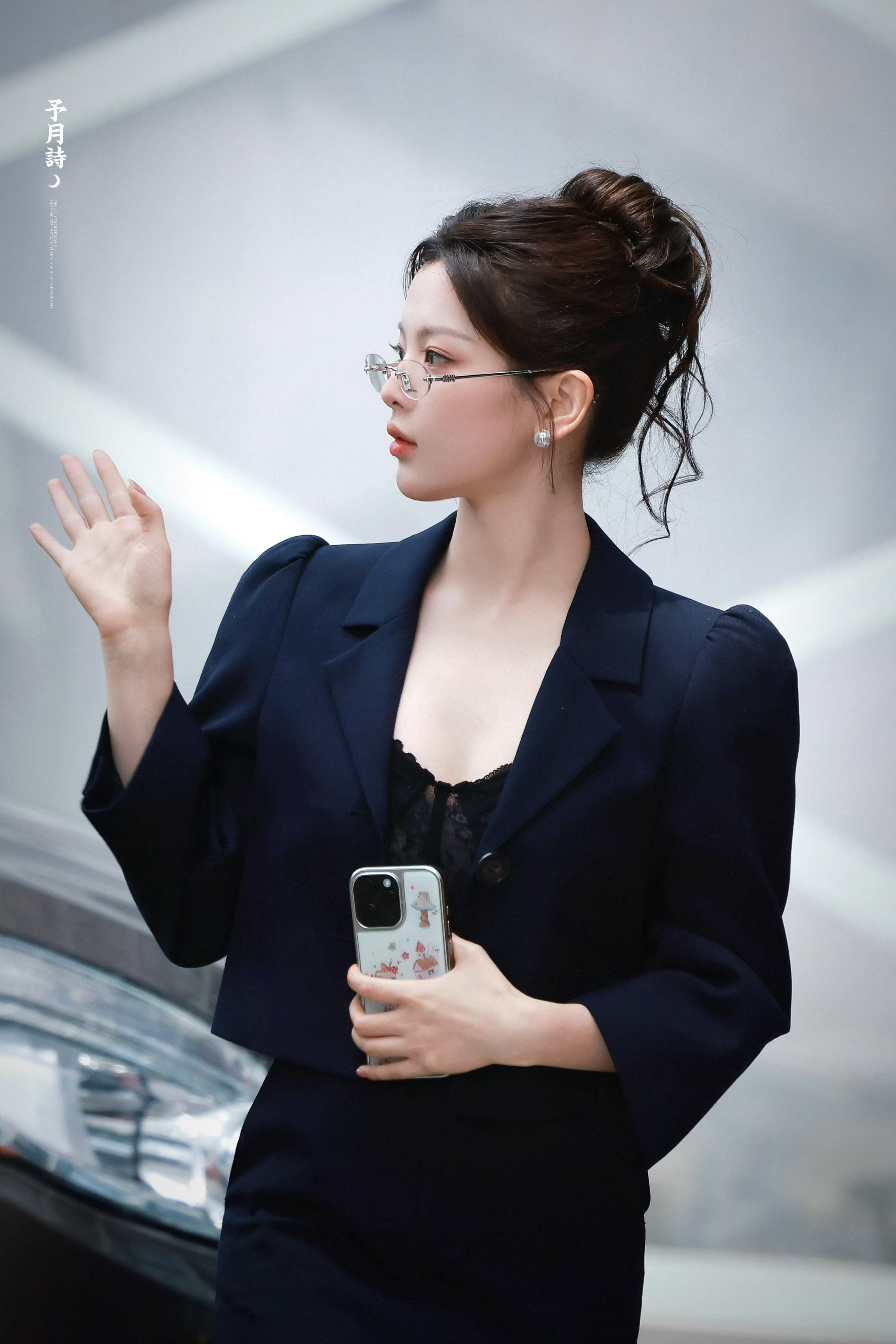 杨超越西装眼镜蕾丝内搭 完全是妈妈级别