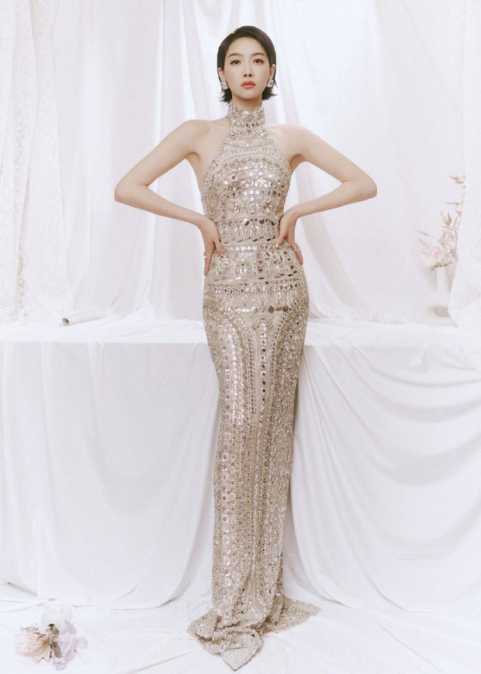 宋茜亮片挂脖裙,超不错的!