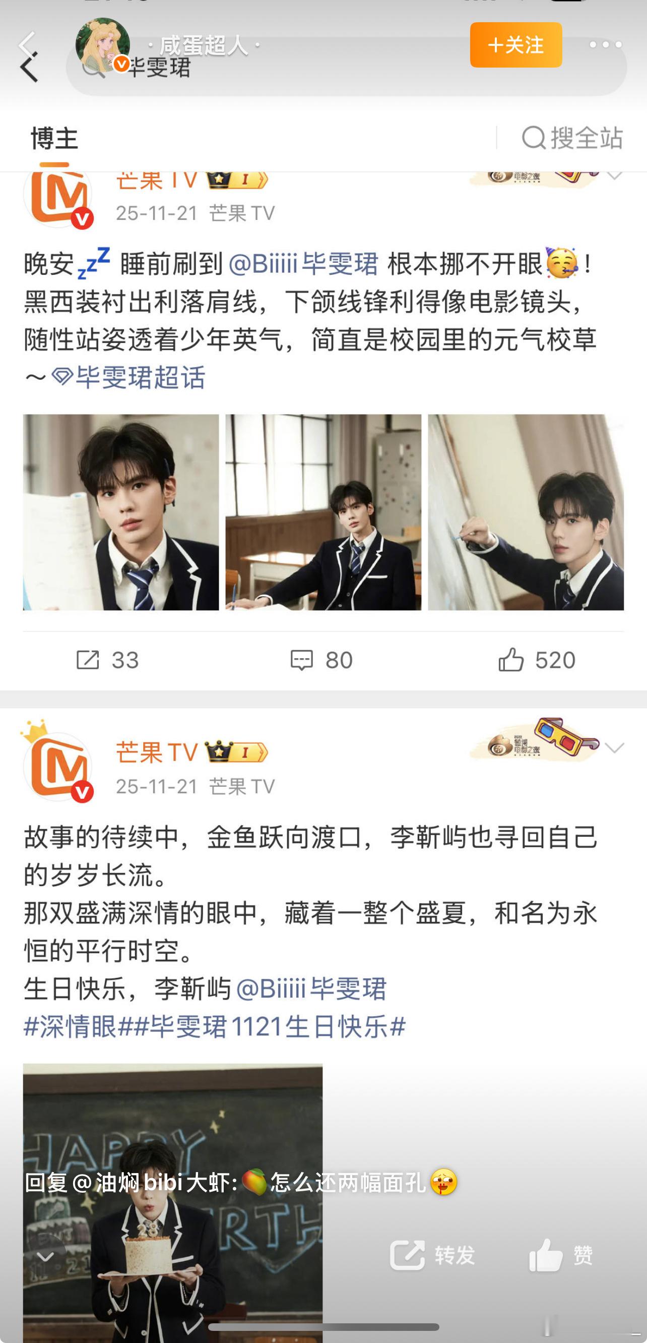 咸蛋老奶 有空给哥哥做做书局吧 别到哪都拿《深情眼》来装b了 你哥哥不止一部剧
