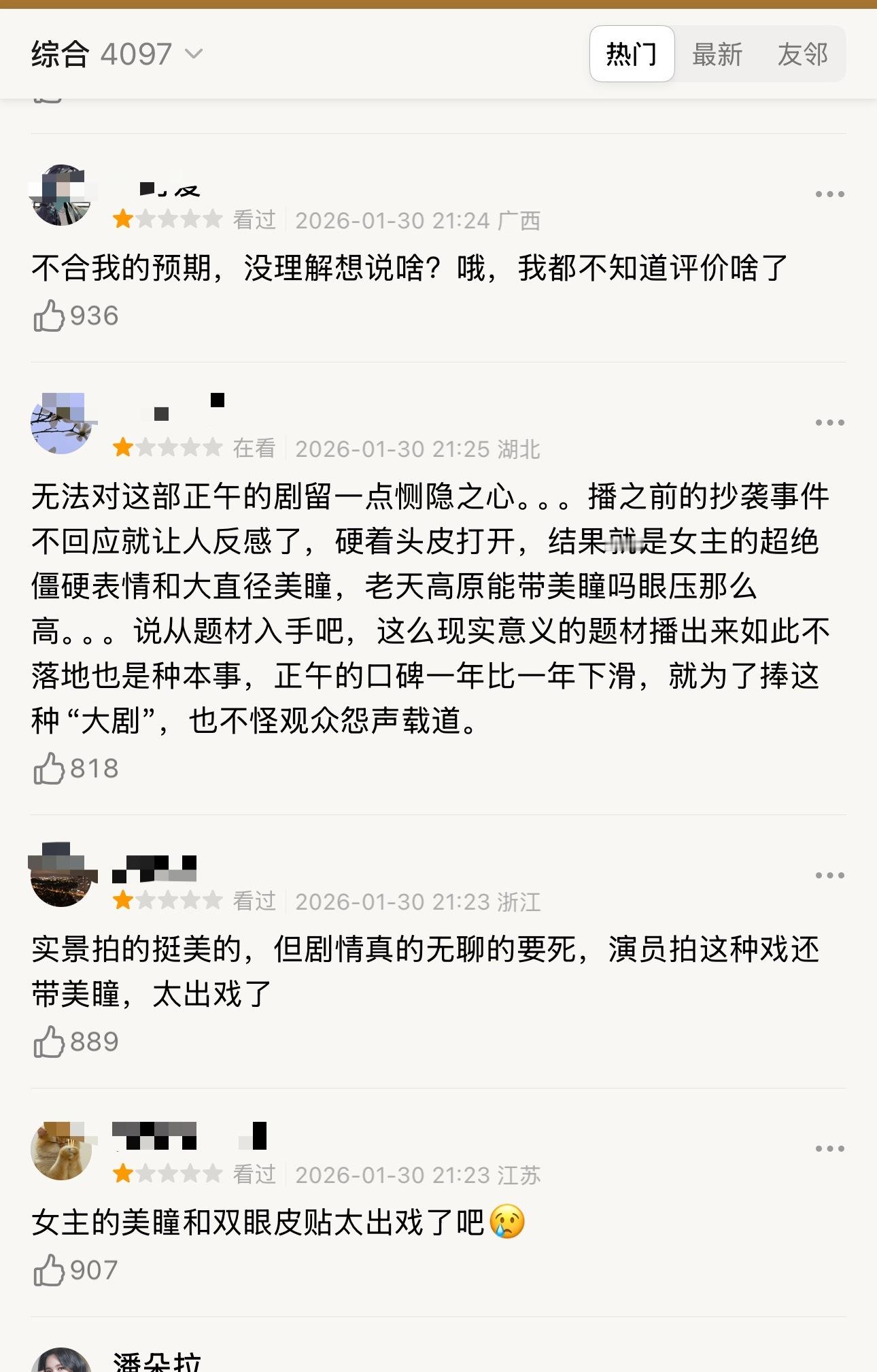 感觉生命树全平台口碑崩塌了。很多人表示美瞳和双眼皮贴太出戏,剧情无聊导演节奏把控不行