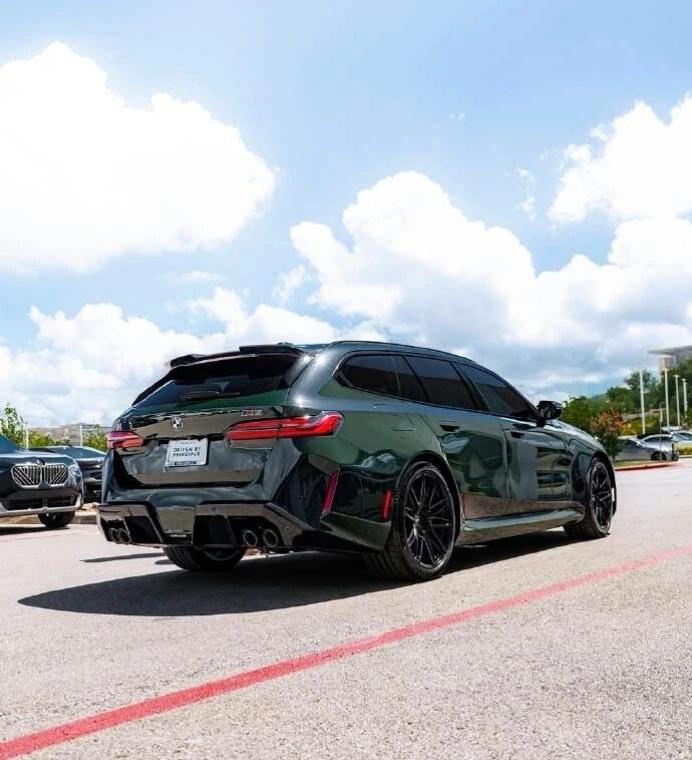长出旅行车股:有着600匹的野心“吸装暴徒”披上旅行车外衣,还挺优雅,又英国赛车绿——这台宝马M5旅行版,真是又性能又浪漫的。 直瀑格栅配熏黑套件,这猛兽的獠牙真獠,瓦罐车身,溜背线条,四出排气,这些融进英伦绿里,帅惨了,卡钳都明黄黄的。 能装下露营装备的“家用车”,踩下油门就是性能怪兽——M Power的灵魂,不会被后备箱的尺寸驯服。