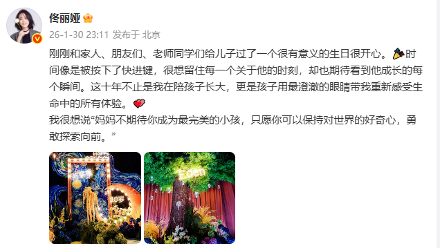 佟丽娅庆祝儿子10岁生日佟丽娅庆祝朵朵10岁生日 发文庆祝儿子朵朵10岁生日:“妈妈不期待你成为最完美的小孩,只愿你可以保持对世界的好奇心,勇敢探索向前。”